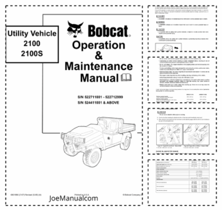 Bobcat 2100 2100S Utility Vehicle Operation and Maintenance Manual