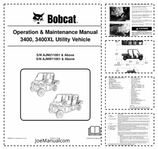 Bobcat 3400 3400XL Utility Vehicle Operation and Maintenance Manual AJNU AJNW