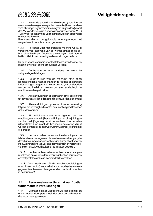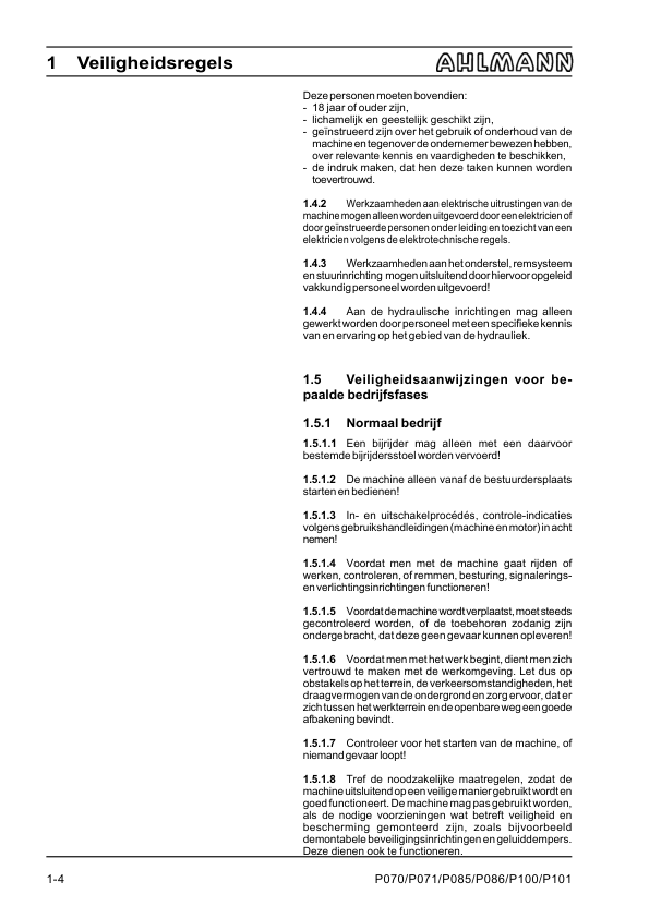 Ahlmann AX 70 85 100 Wheel Loader Operation Manual NL