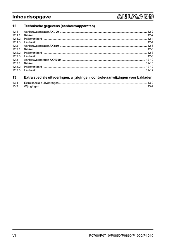 Ahlmann AX 700 850 1000 Wheel Loader Operation Manual NL