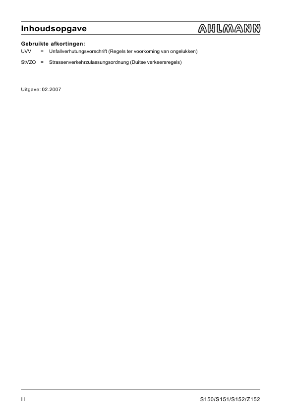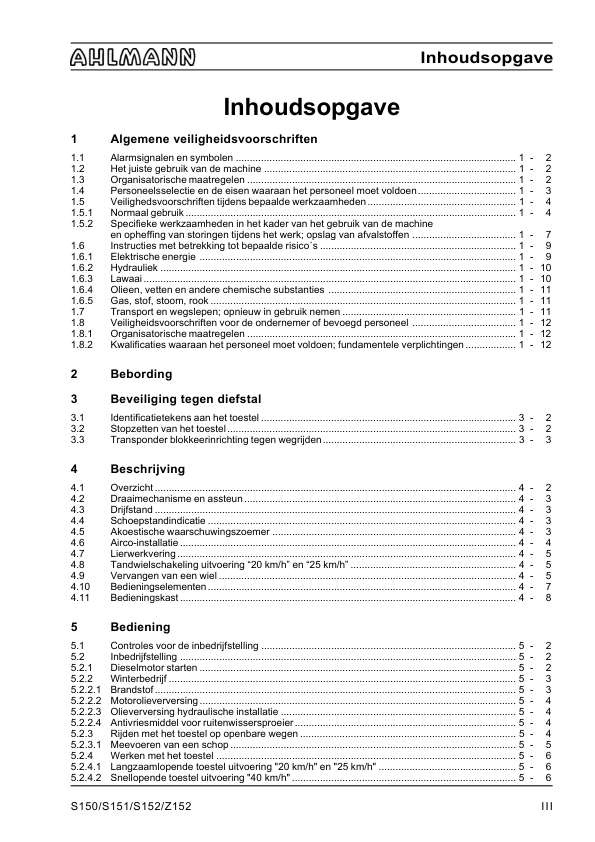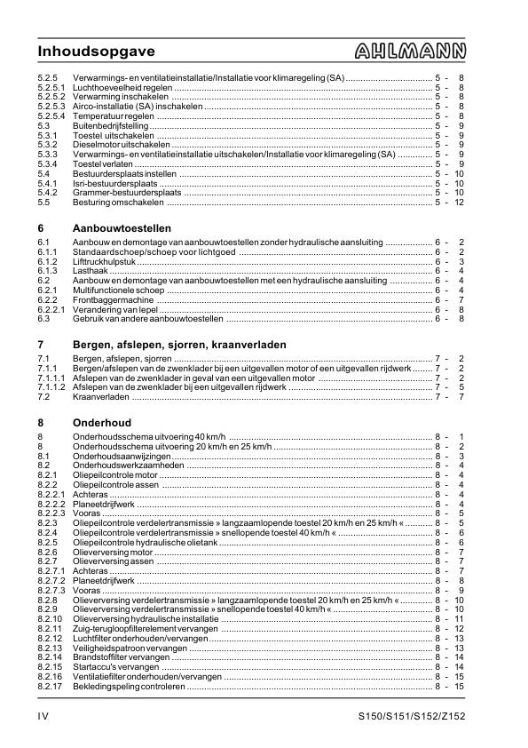 Ahlmann AZ 150 Wheel Loader Operation Manual NL
