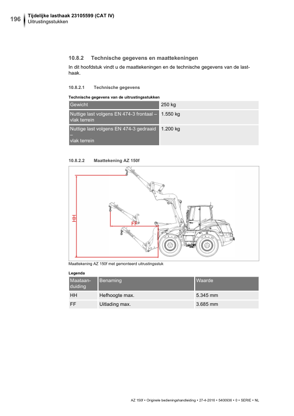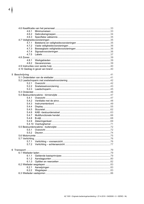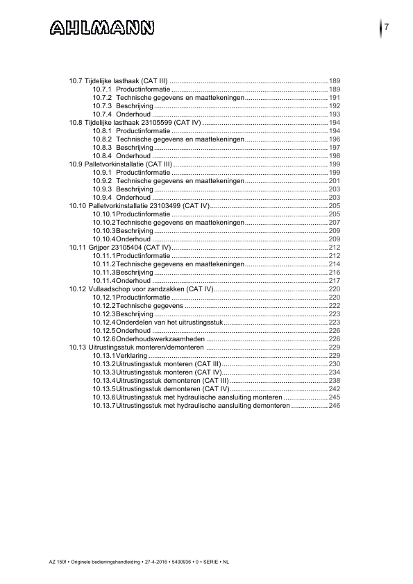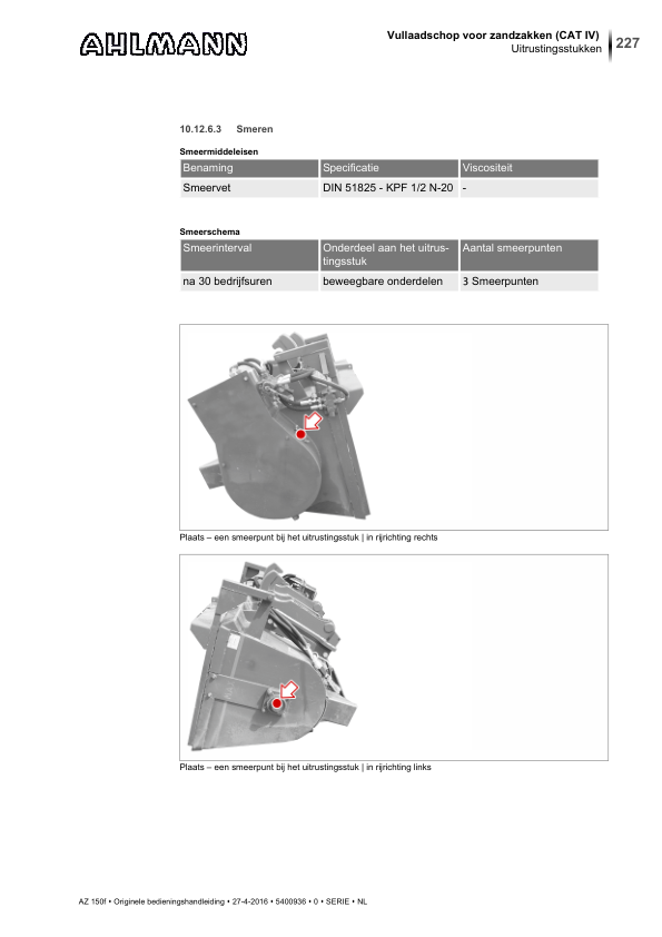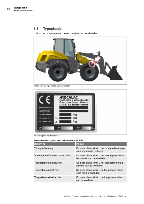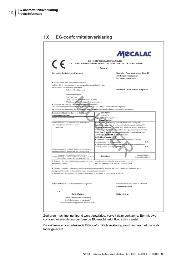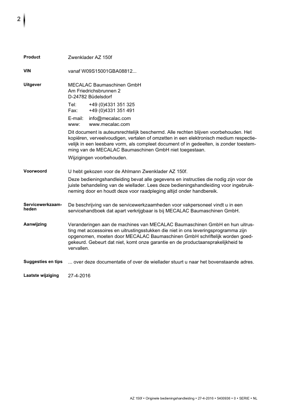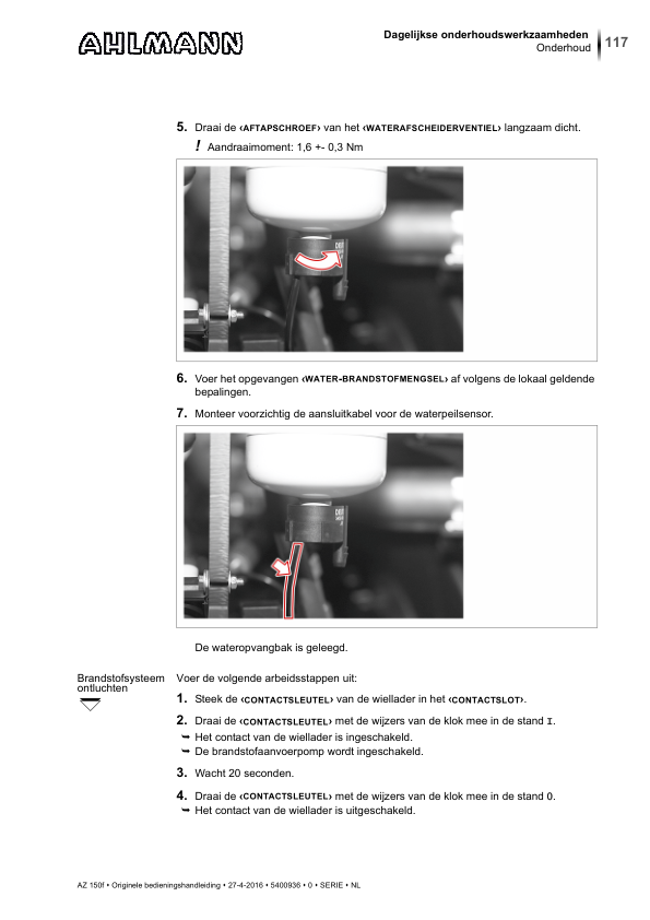 Ahlmann AZ 150f Wheel Loader Operation Manual SN from W09S15001GBA08812 NL