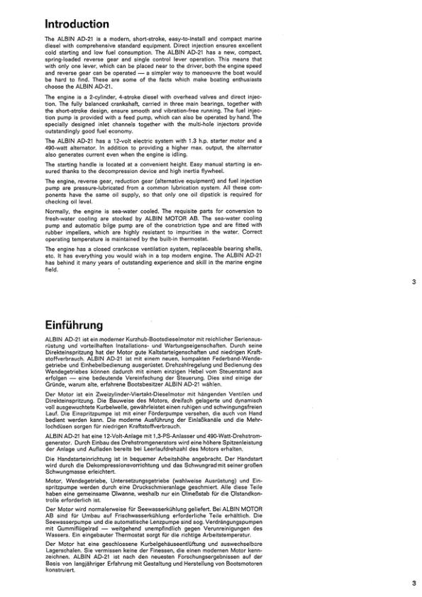 Albin AD21 Marine Engine Operators Manual