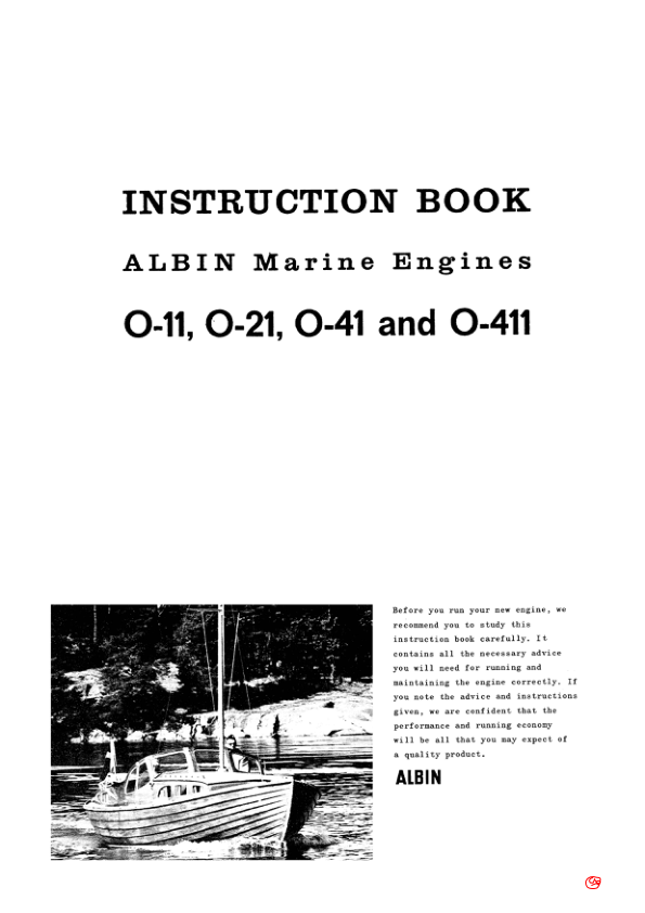 Albin O-11 O-21 O-41 O-411 Marine Engine Instruction Book