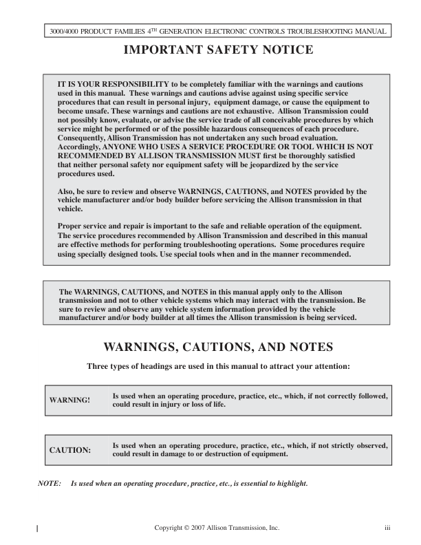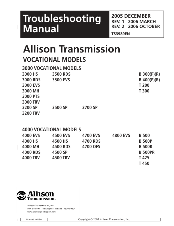 Allison JCB 3000 4000 Series Transmission Troubleshoting Service Manual 9806/4040