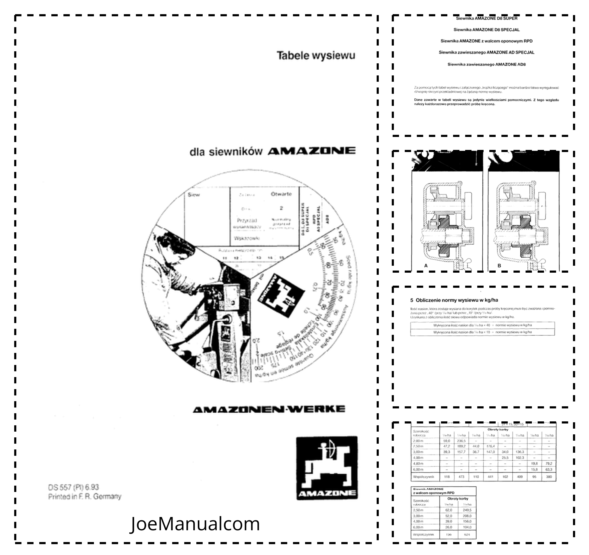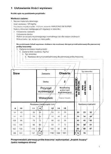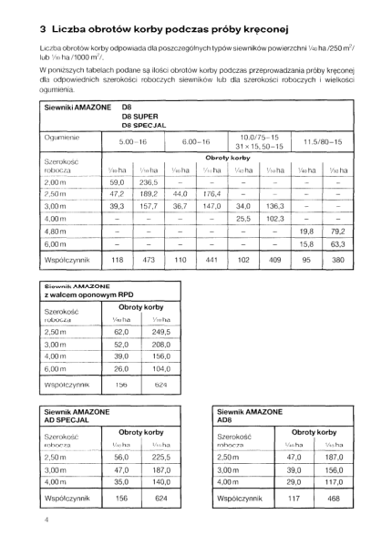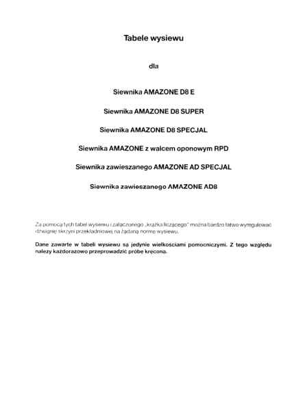 Amazone D8 D8E D8 Super AD AD8 Seed Drill Calibration Tables