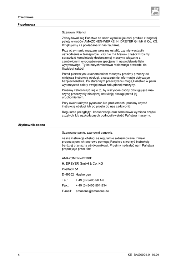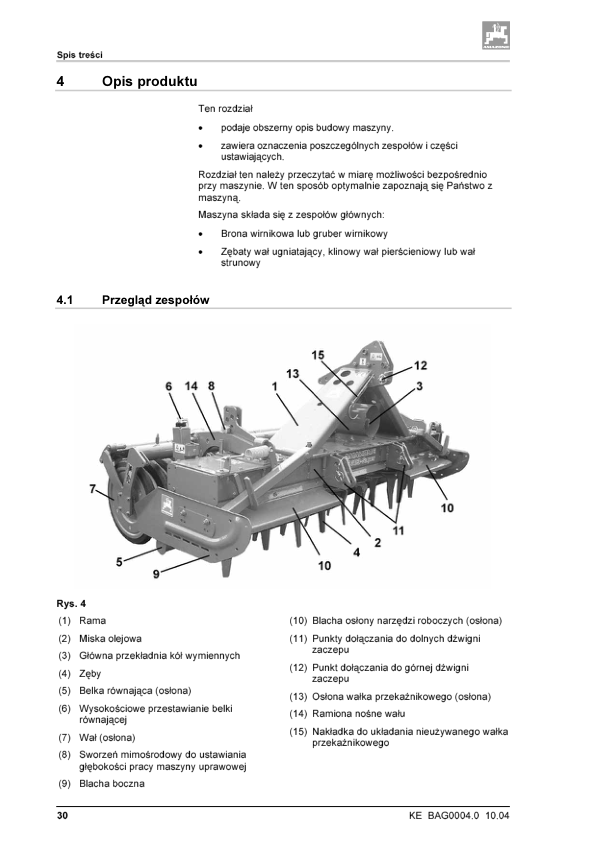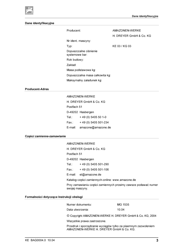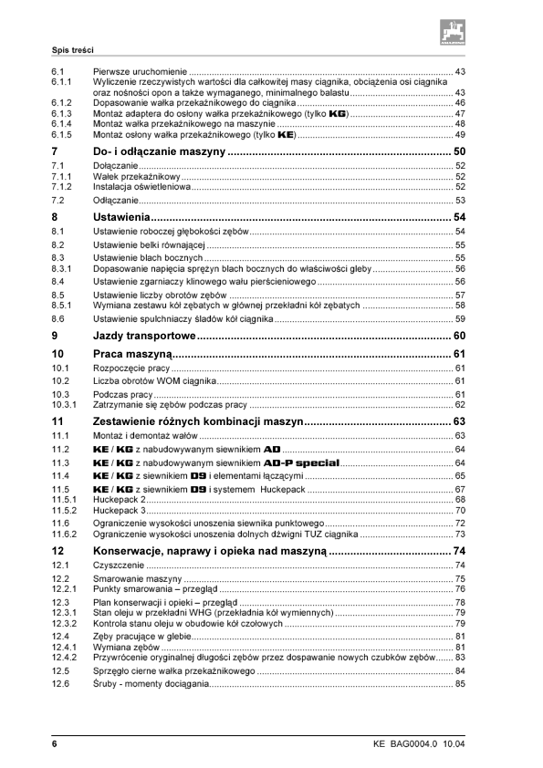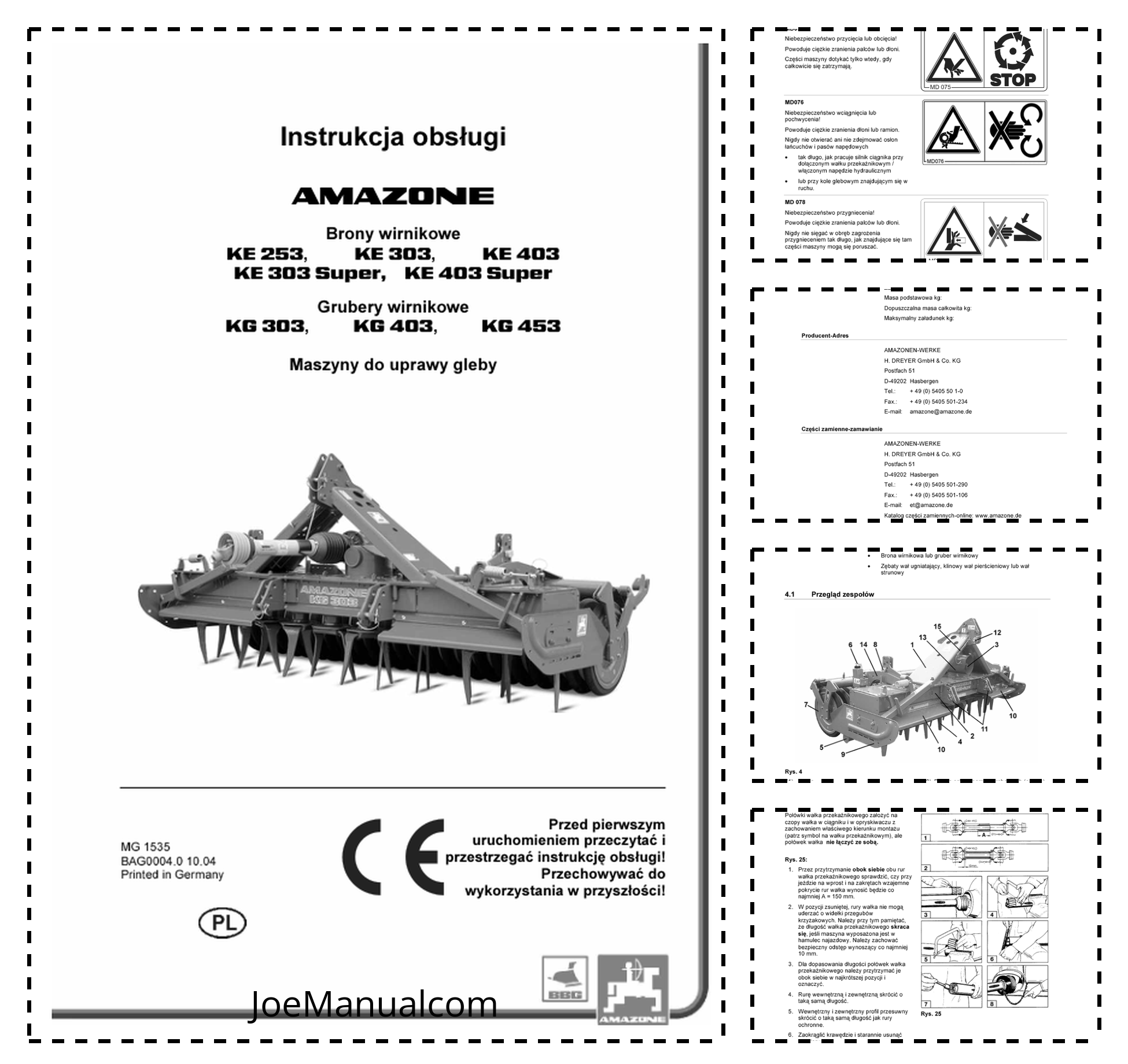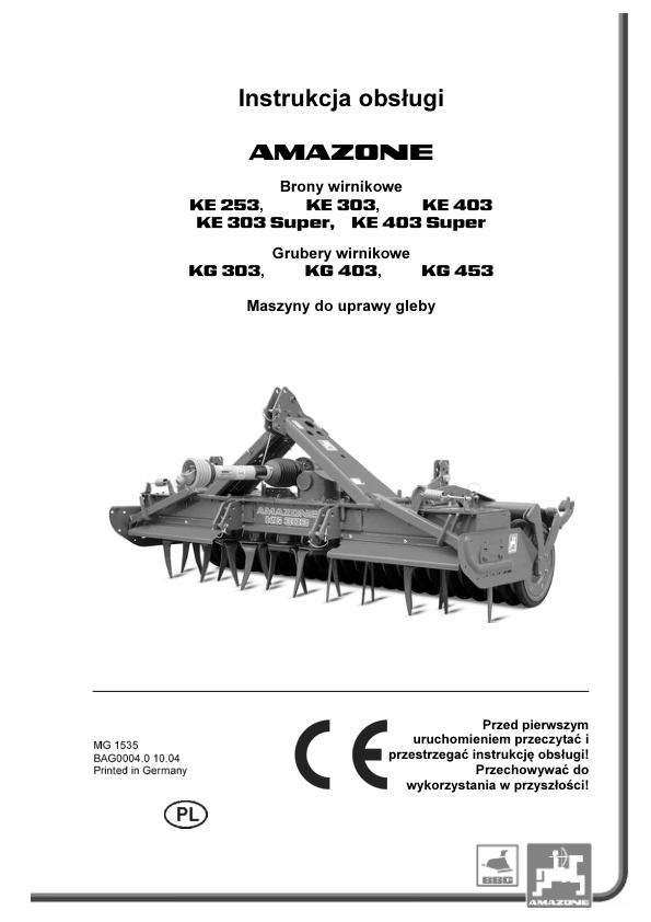 Amazone KE 253 KE 303 KE 403 KG 303 KG 403 KG 453 Power Harrow Cultivator Manual