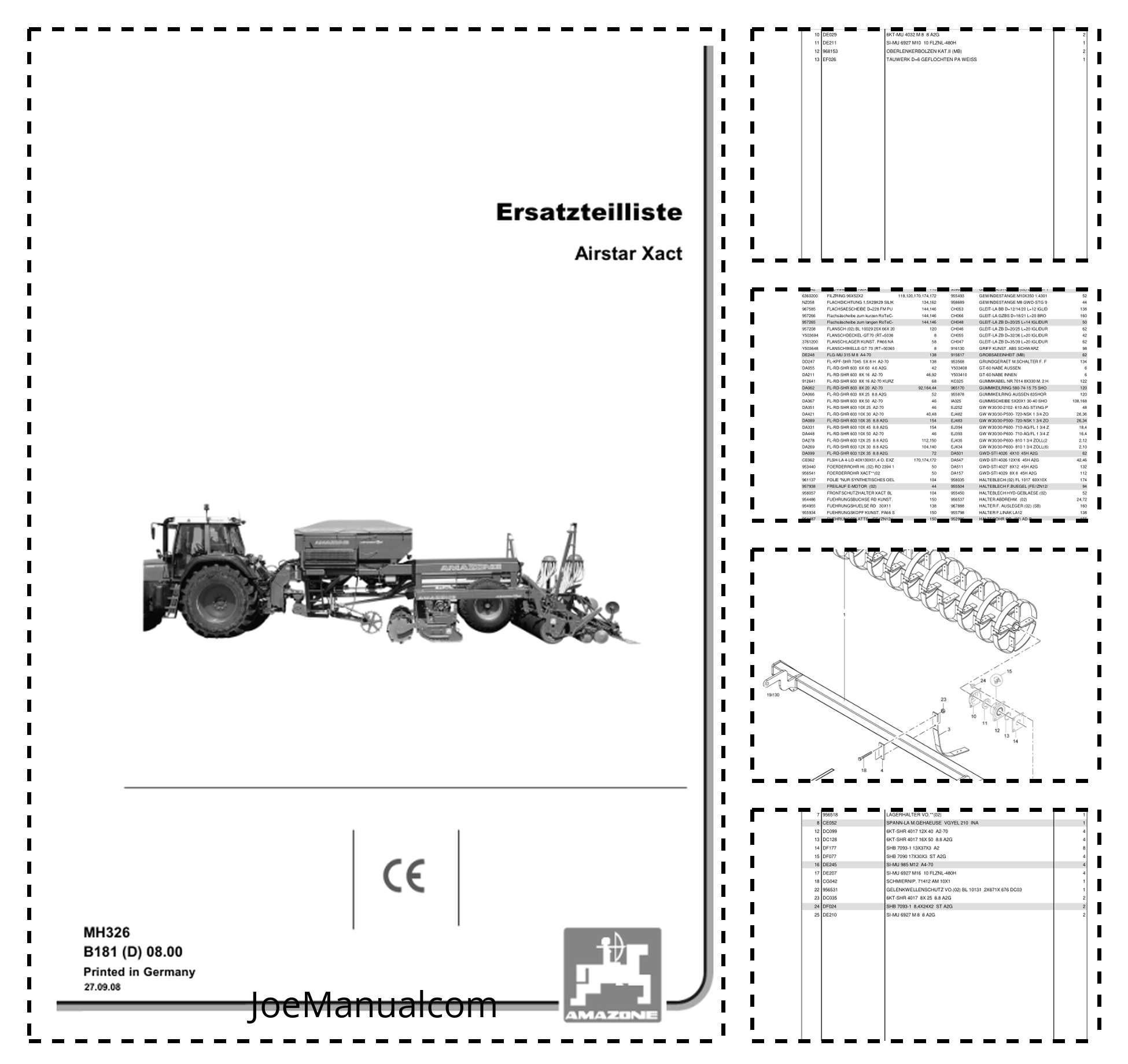 Amazone P 4300 Airstar Xact Seed Drill Spare Parts Catalogue DE