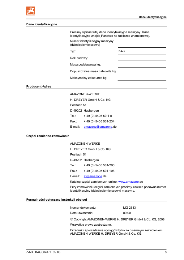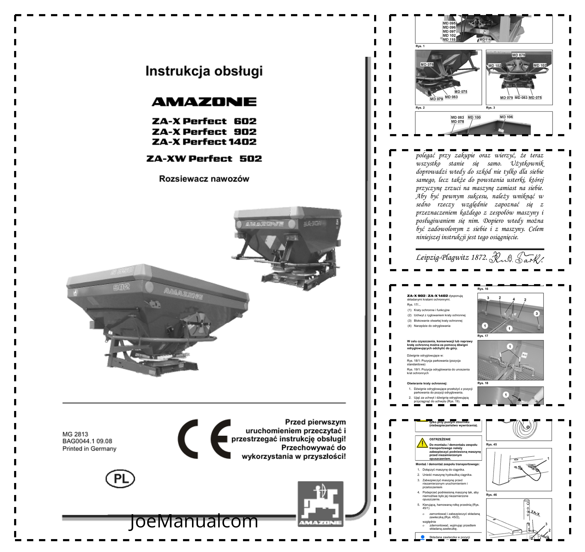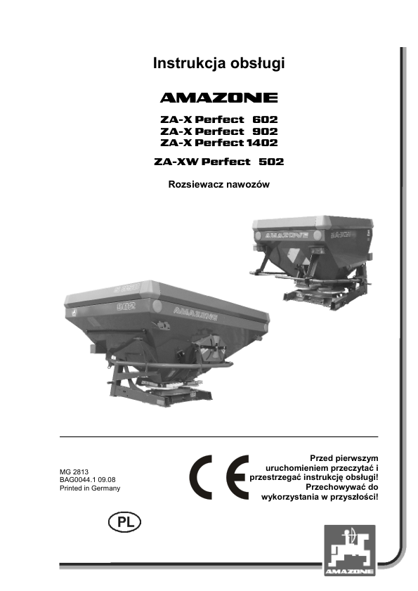 Amazone ZA-X 602 902 1402 ZA-XW 502 Fertilizer Spreader Operators Manual