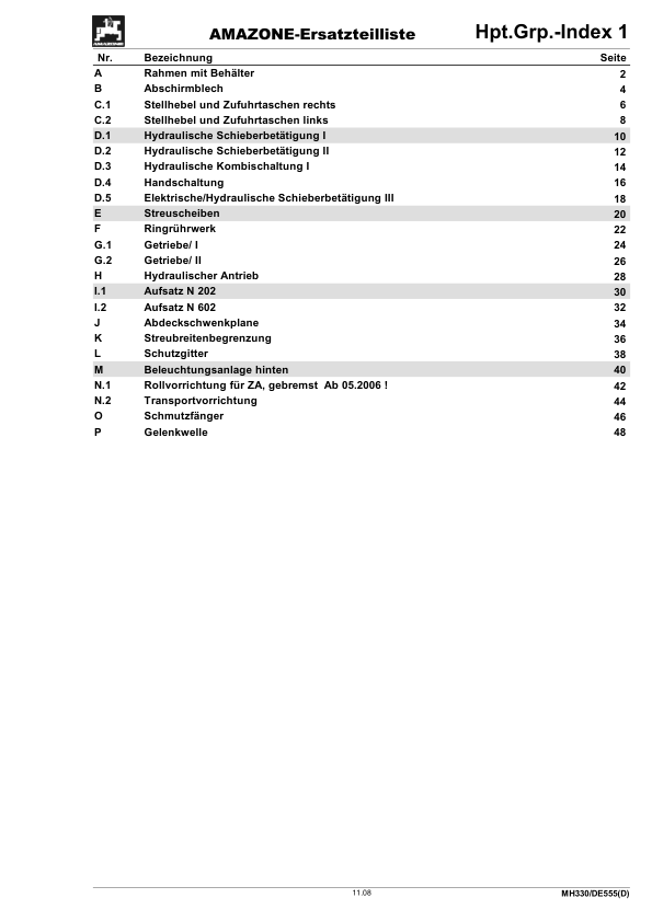 Amazone ZA-XS 02 Fertilizer Spreader Parts Catalog