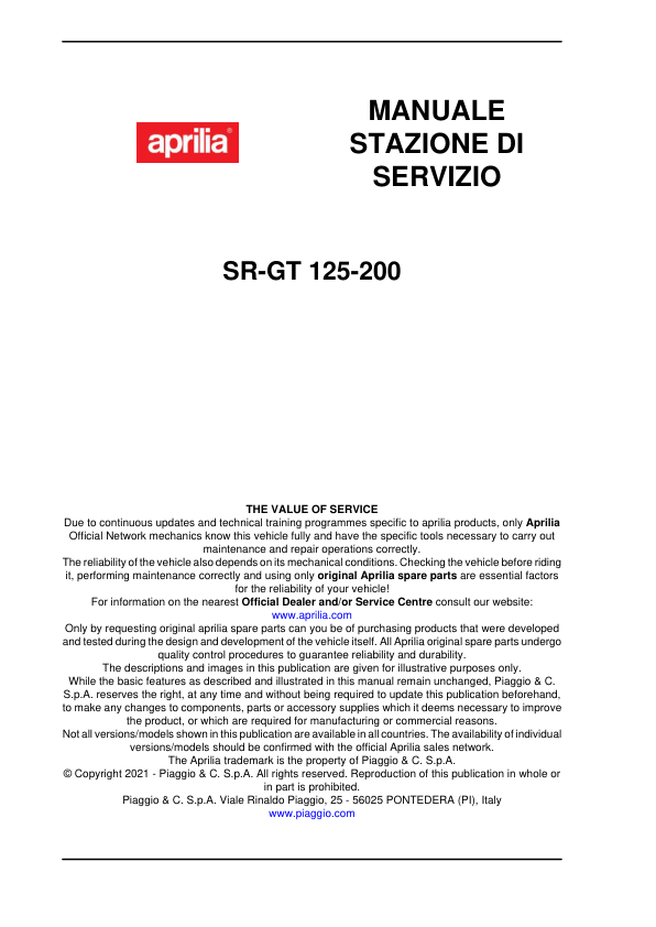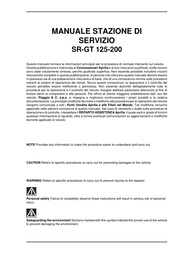 Aprilia SR GT 125 200 Motorcycle Service Manual
