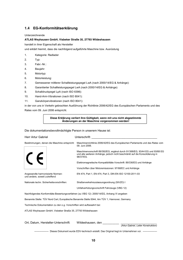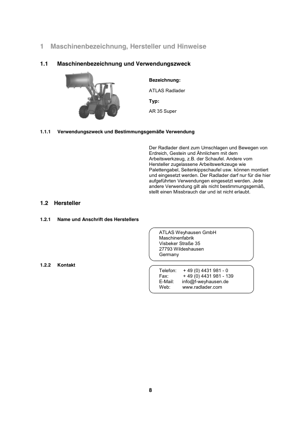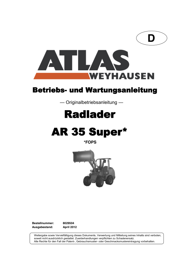 ATLAS AR35 Super Wheel Loader Operators Manual DE