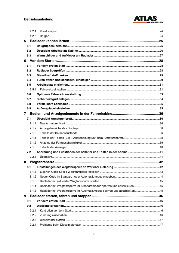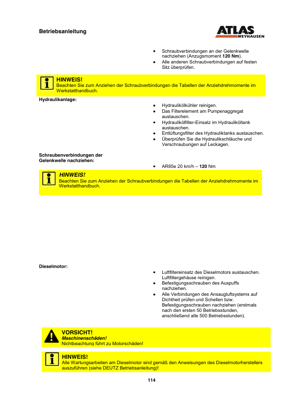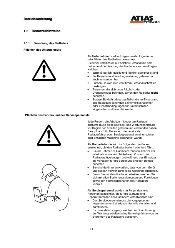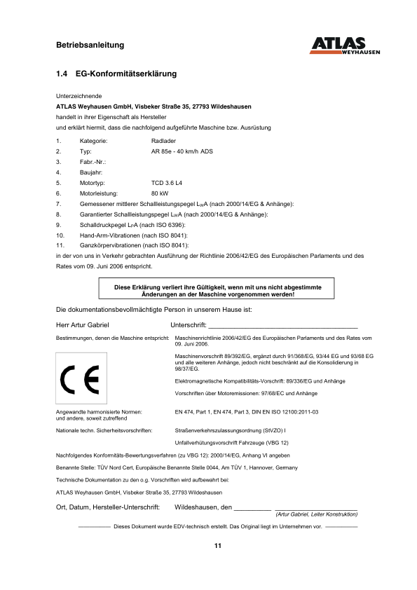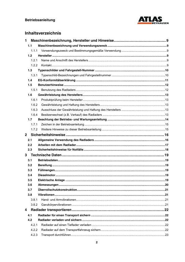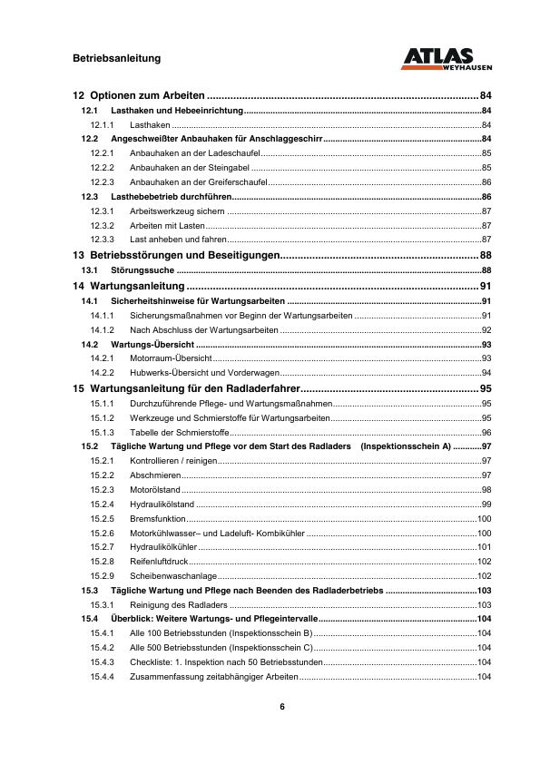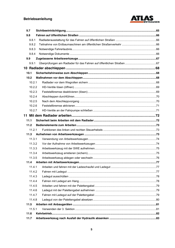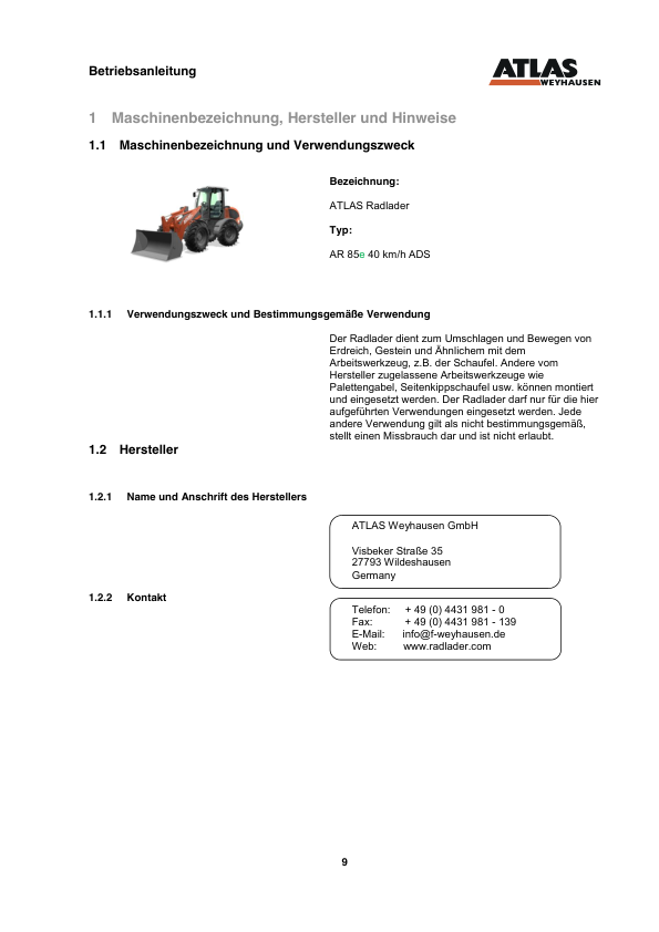 ATLAS AR85E Wheel Loader Operators Manual DE