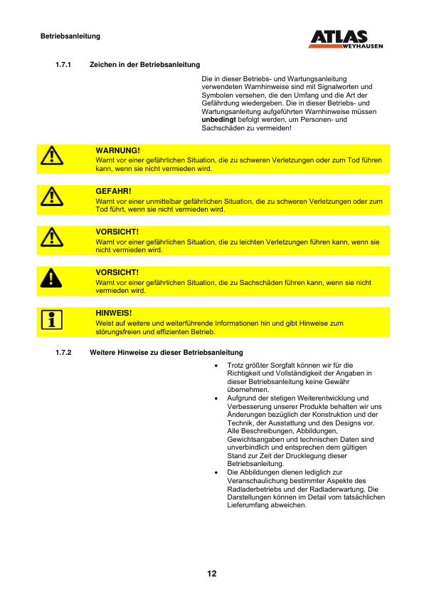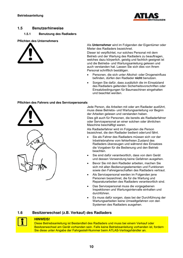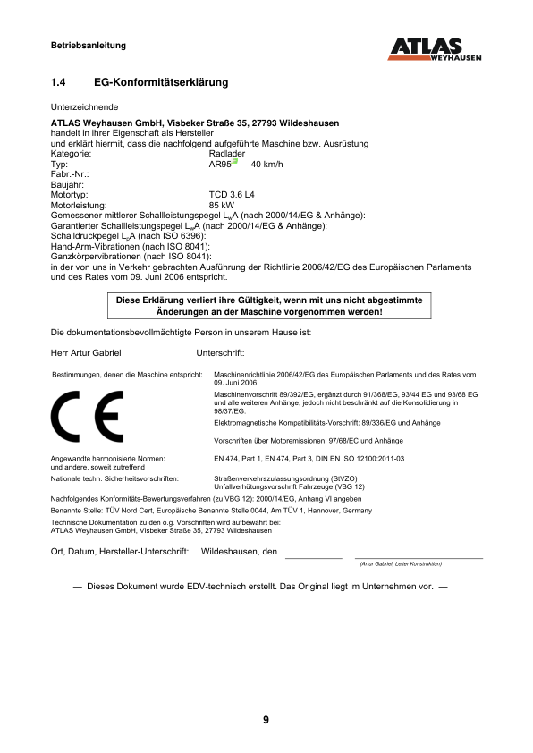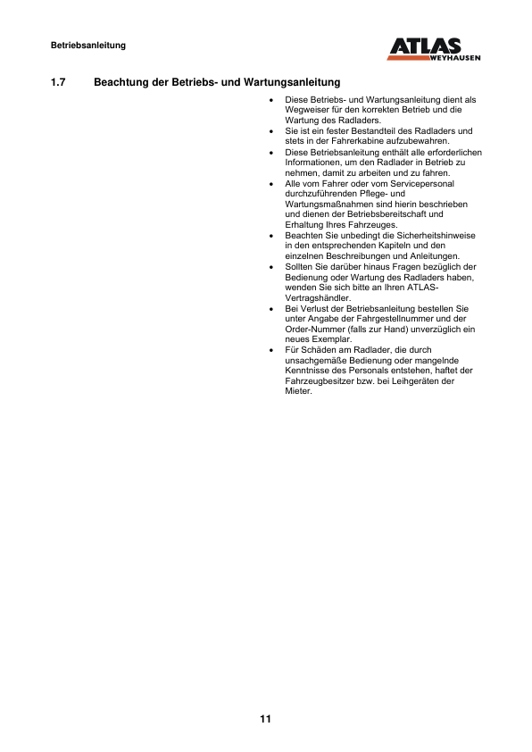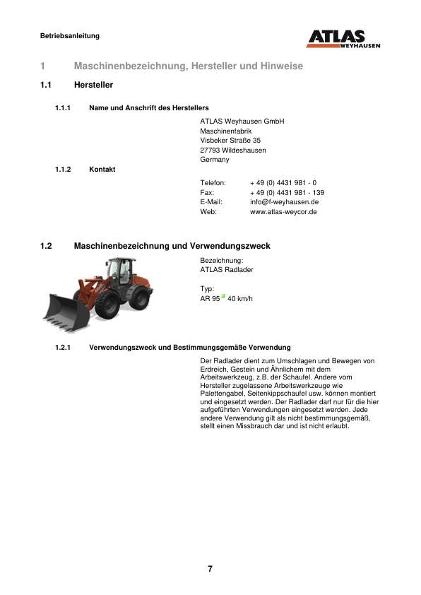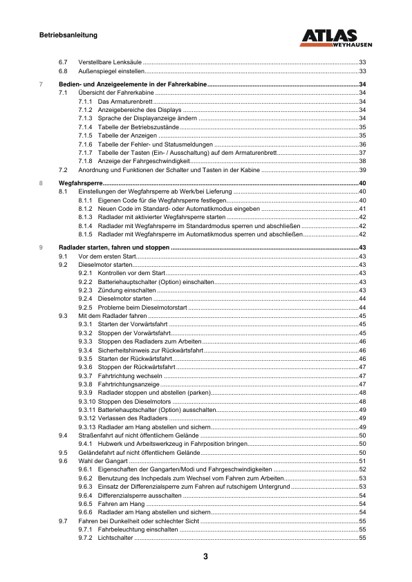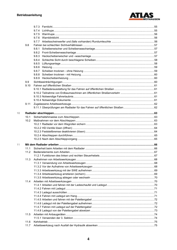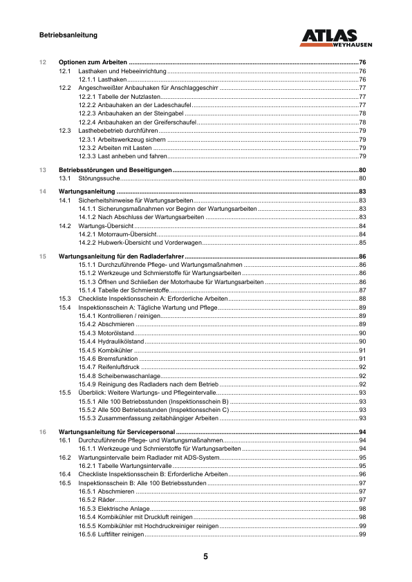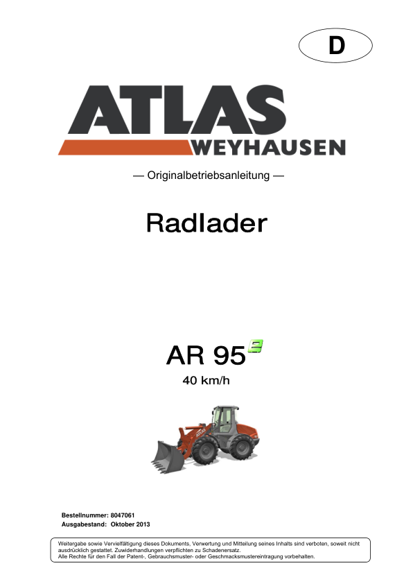 ATLAS AR95E Wheel Loader Operators Manual DE