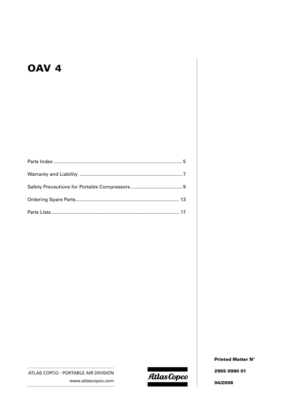 Atlas Copco OAV 4 Portable Compressor Parts List