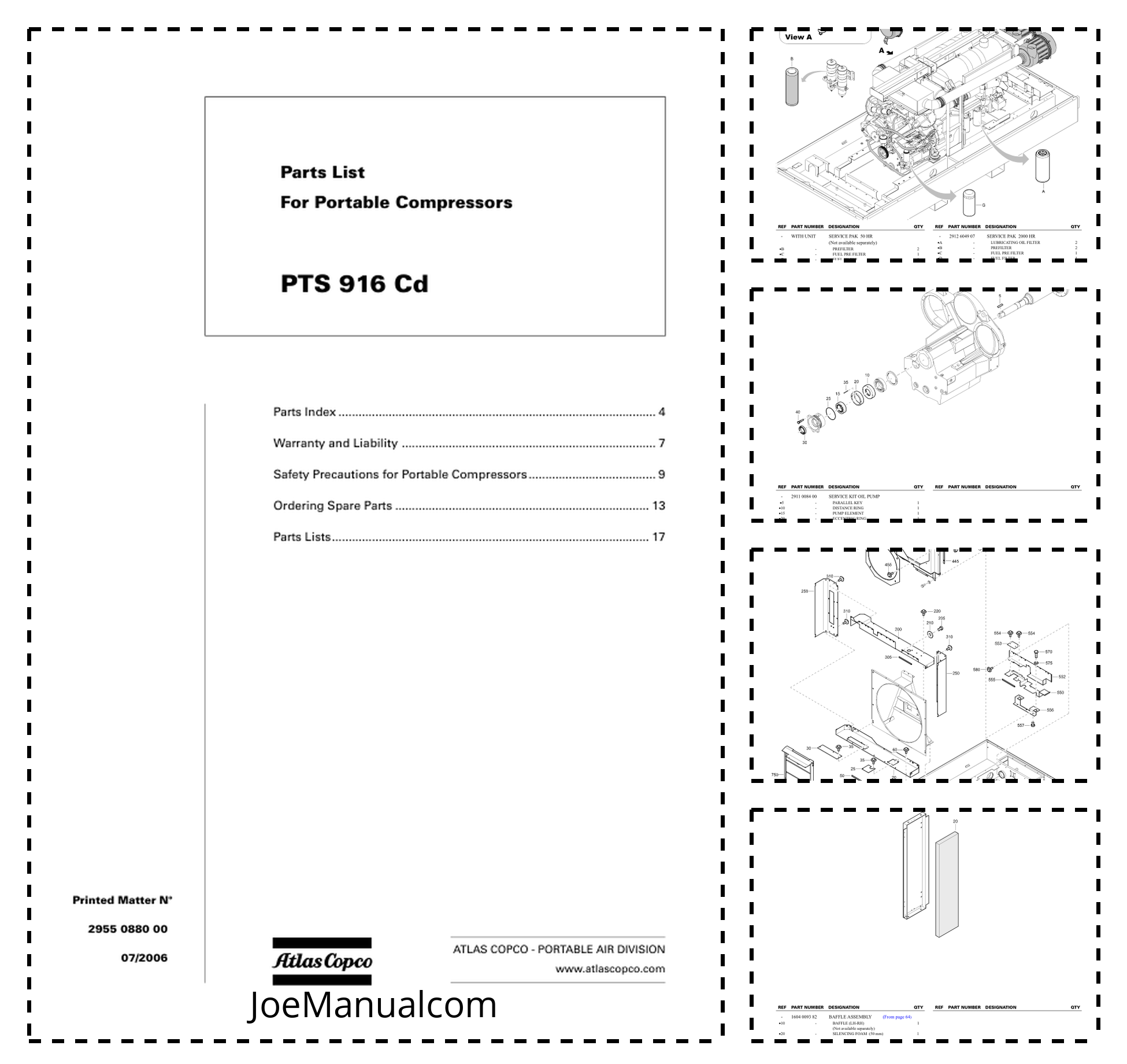 Atlas Copco PTS 916 Portable Compressor Parts List
