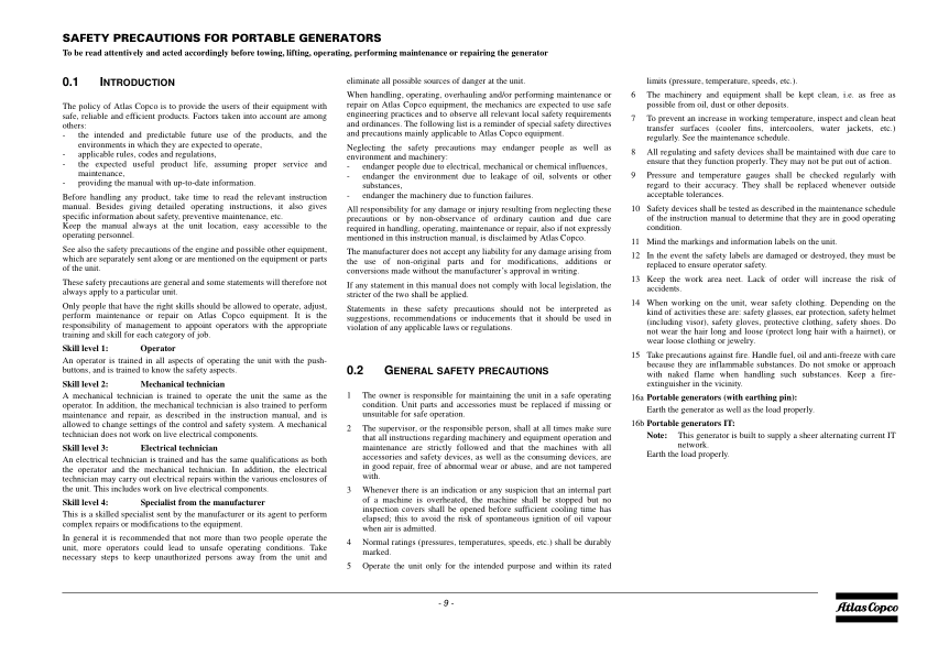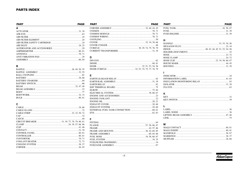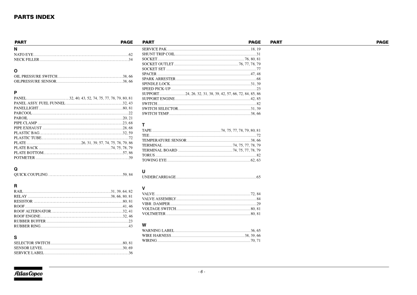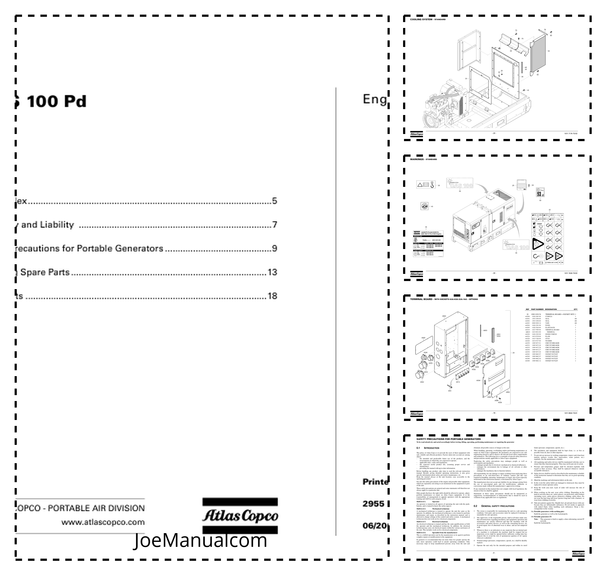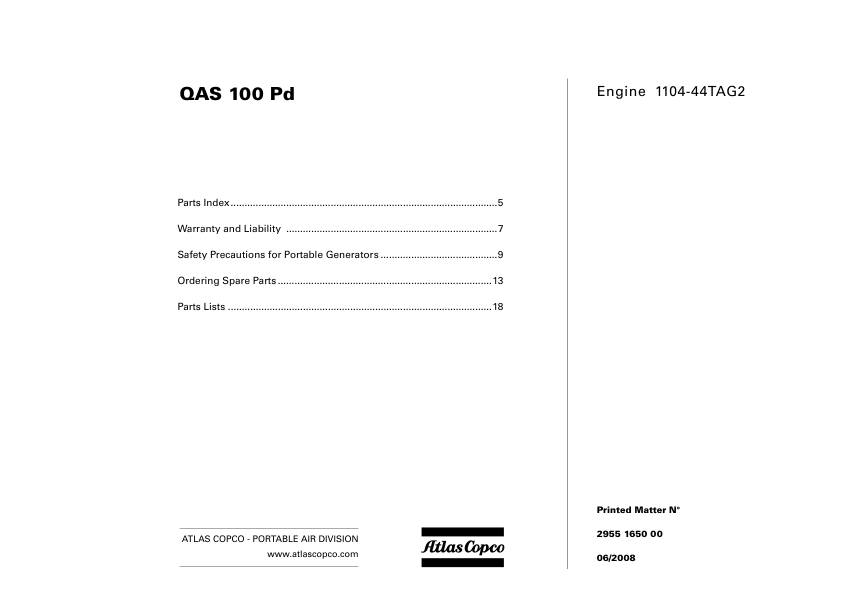Atlas Copco QAS 100 Portable Generator Parts List