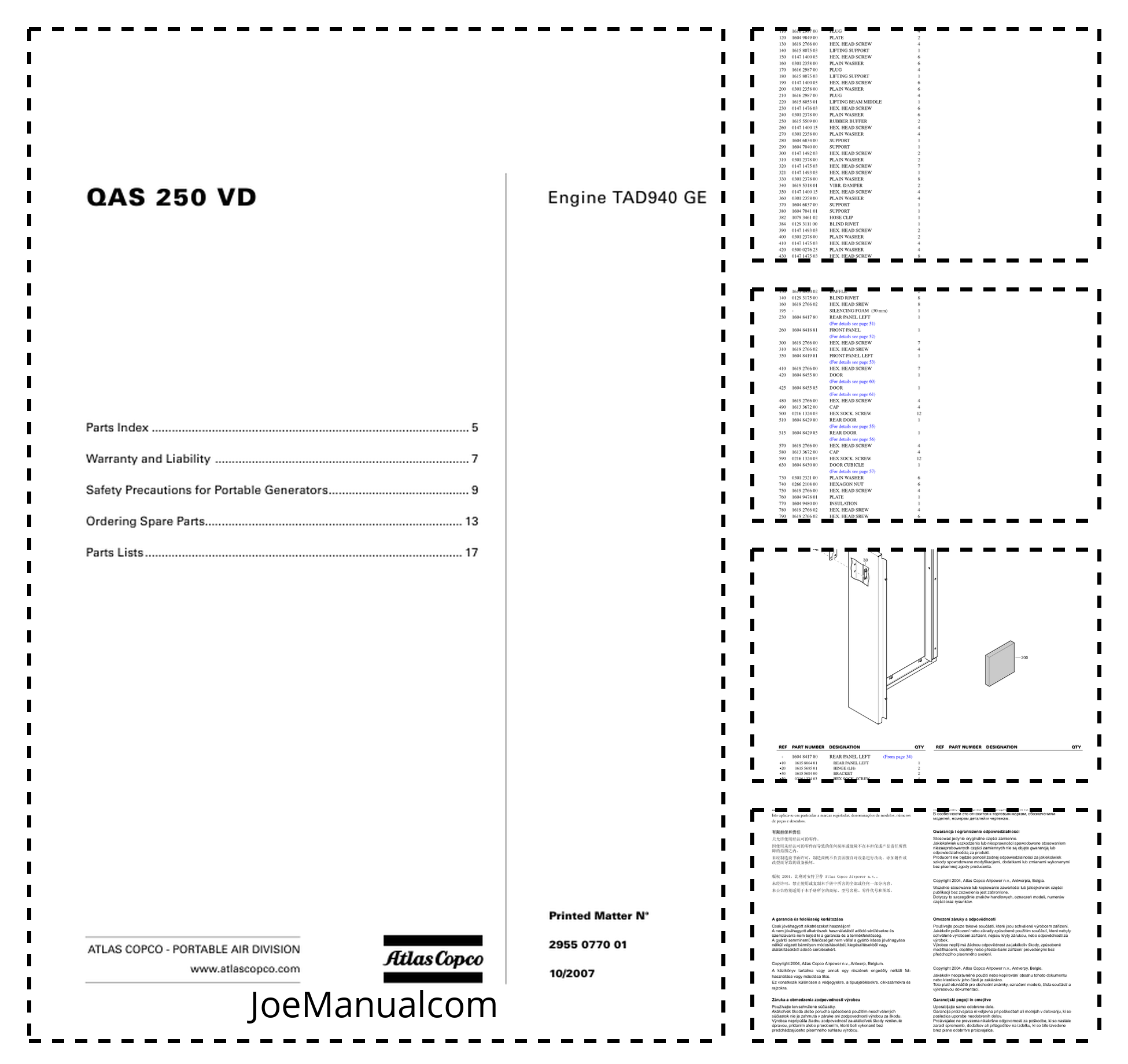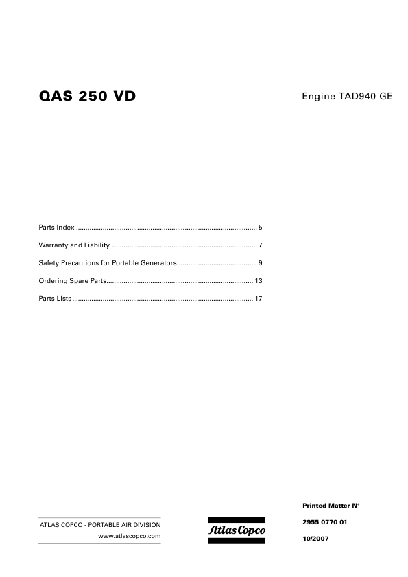 Atlas Copco QAS 250 VD Portable Generator Parts List