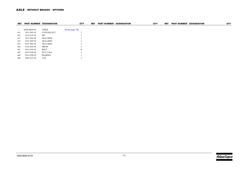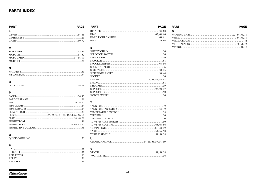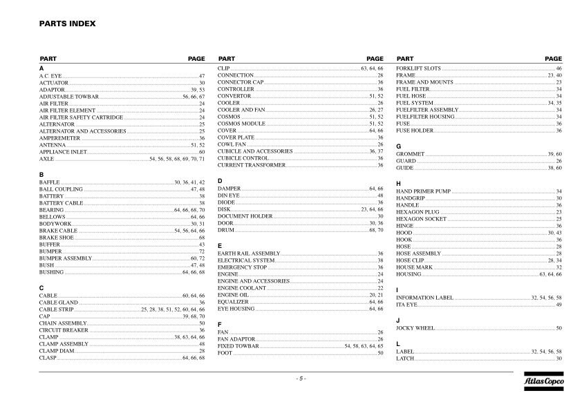 Atlas Copco QAS 45 DD Portable Generator Parts List