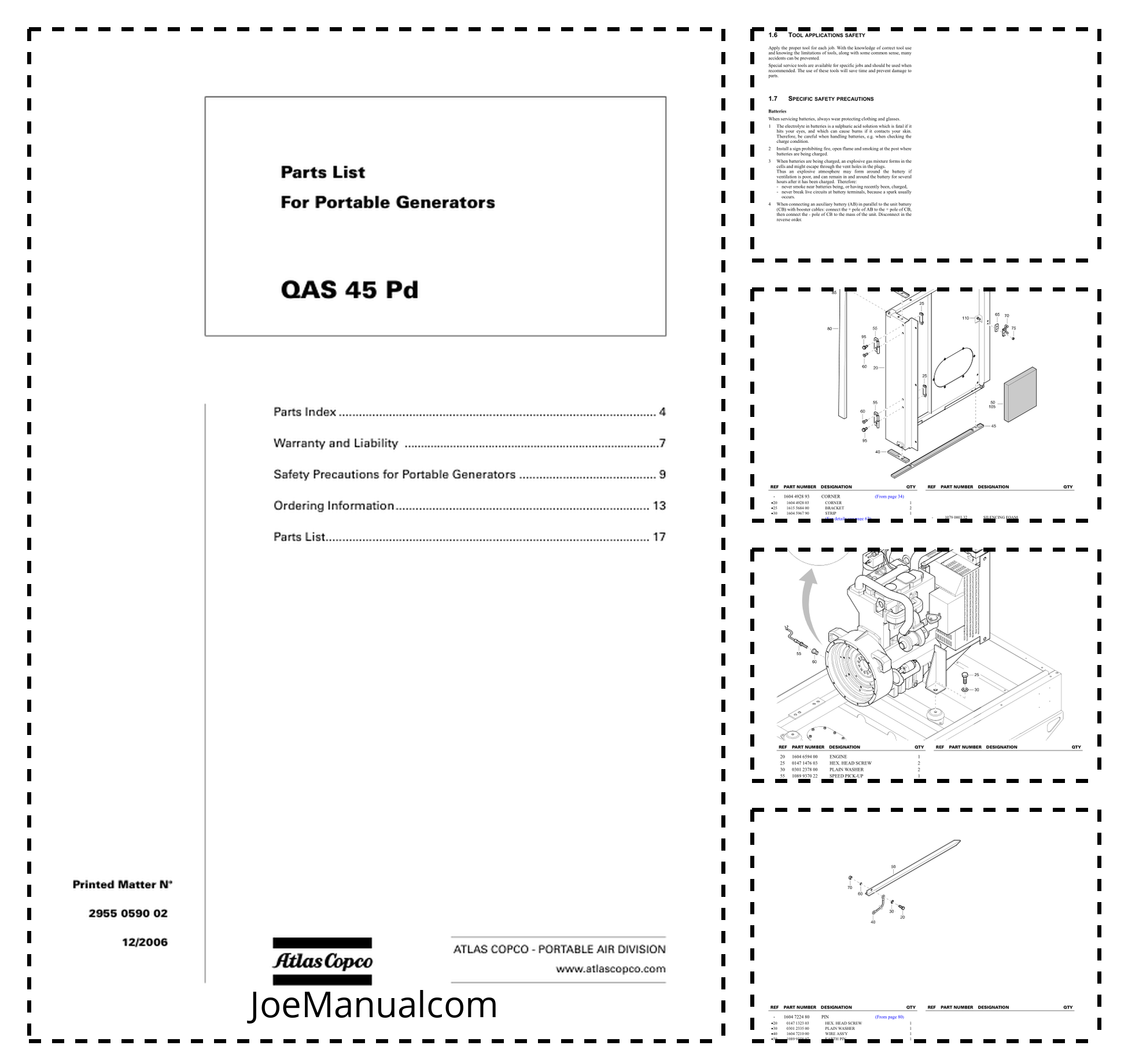 Atlas Copco QAS 45 Pd Portable Generator Parts List