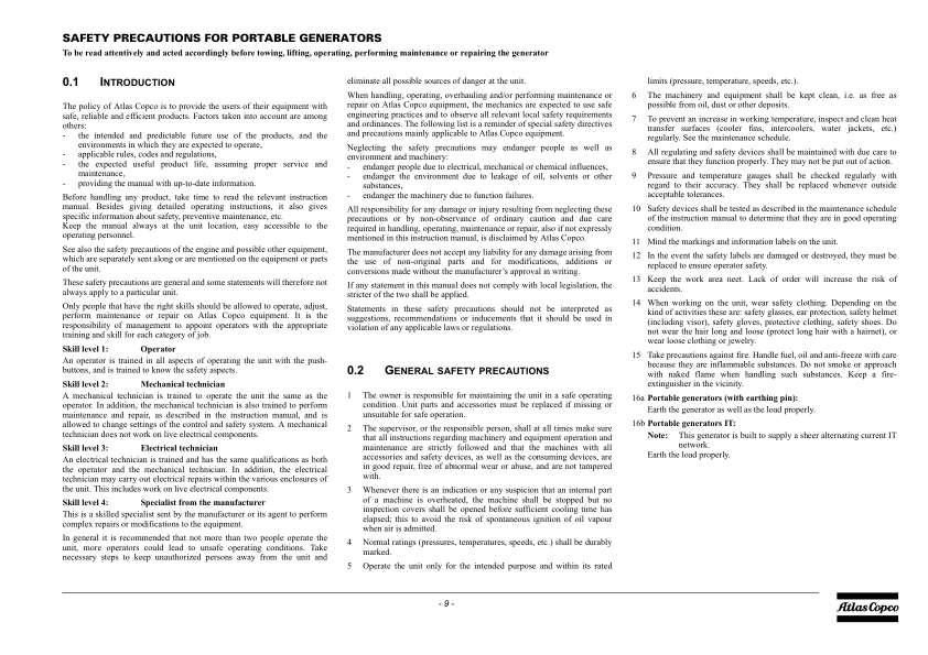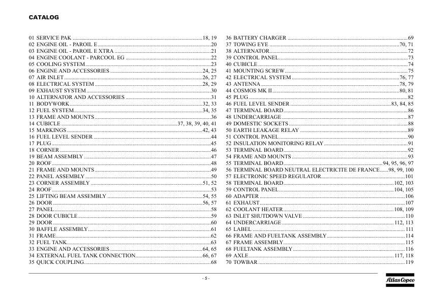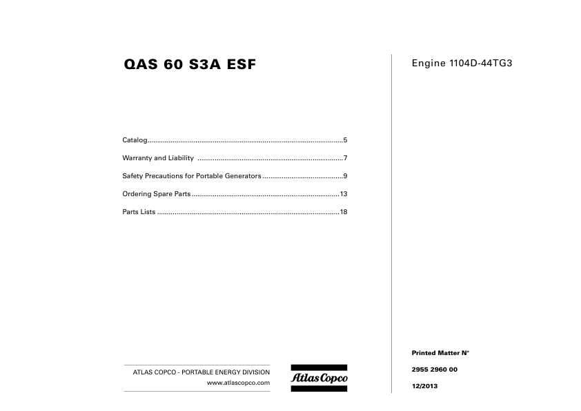 Atlas Copco QAS 60 S3A Portable Generator Parts List