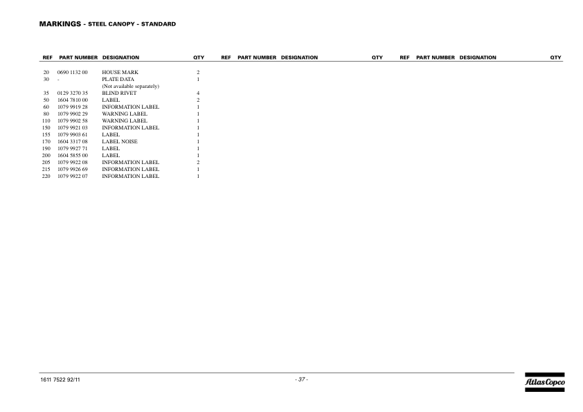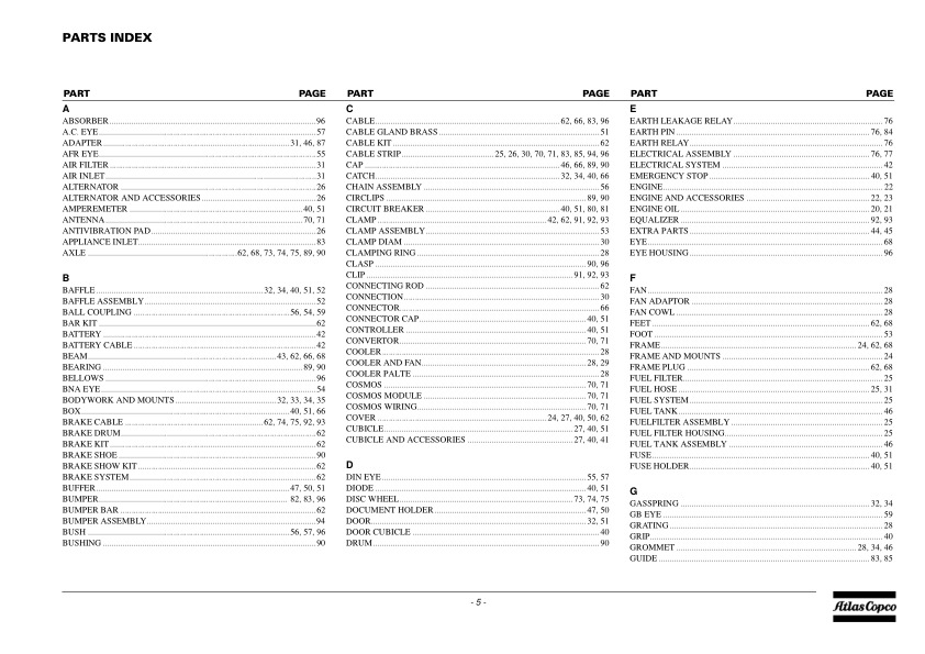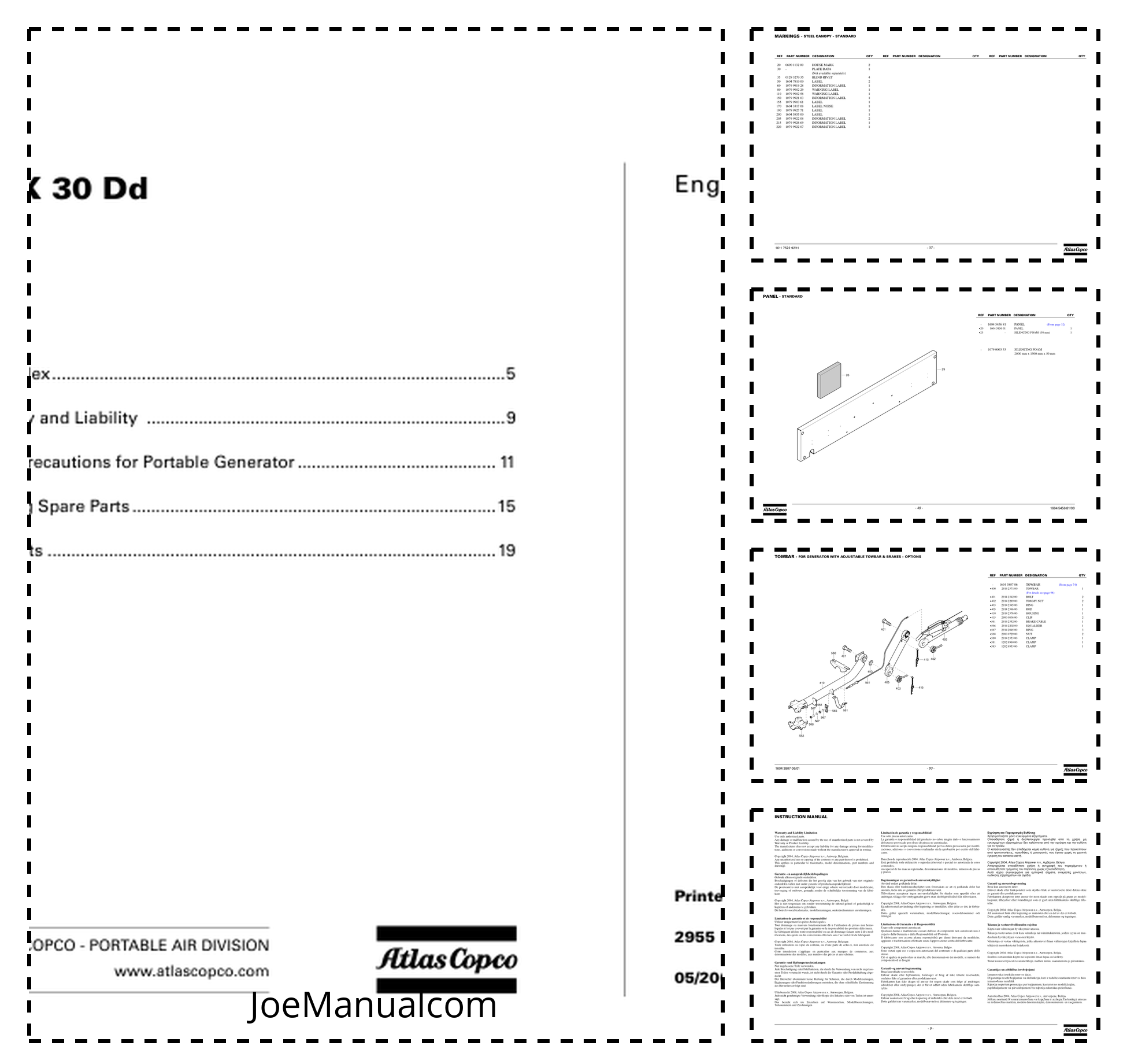 Atlas Copco QAX 30 DD Portable Generator Parts List