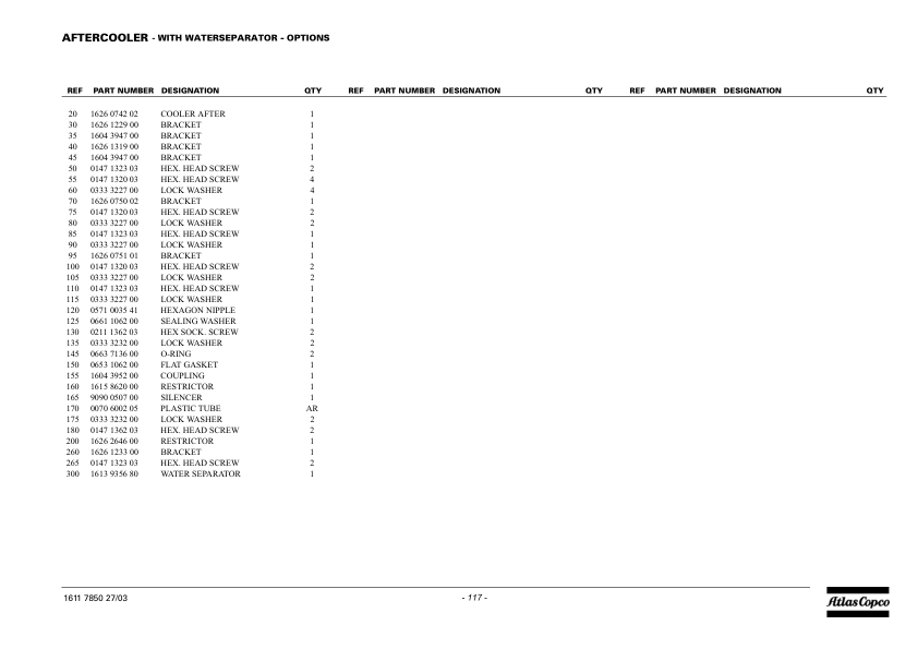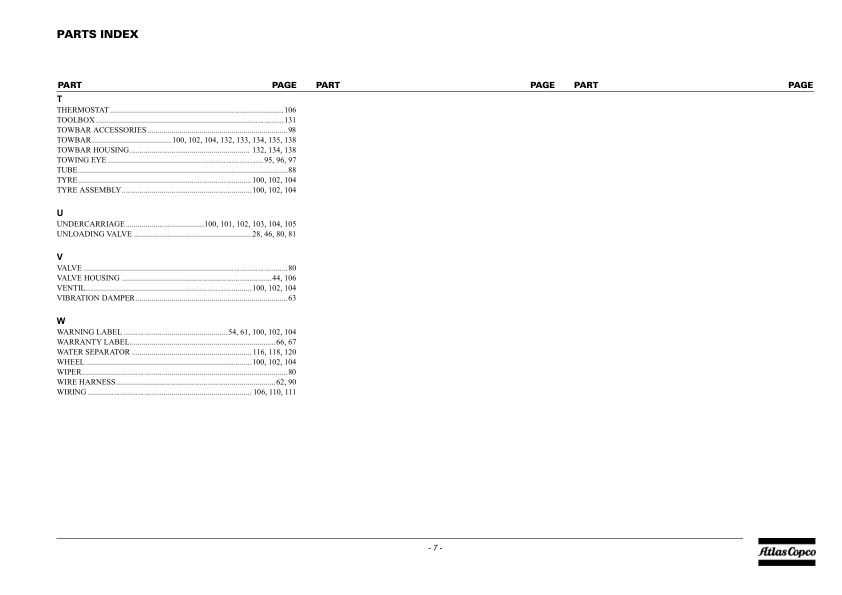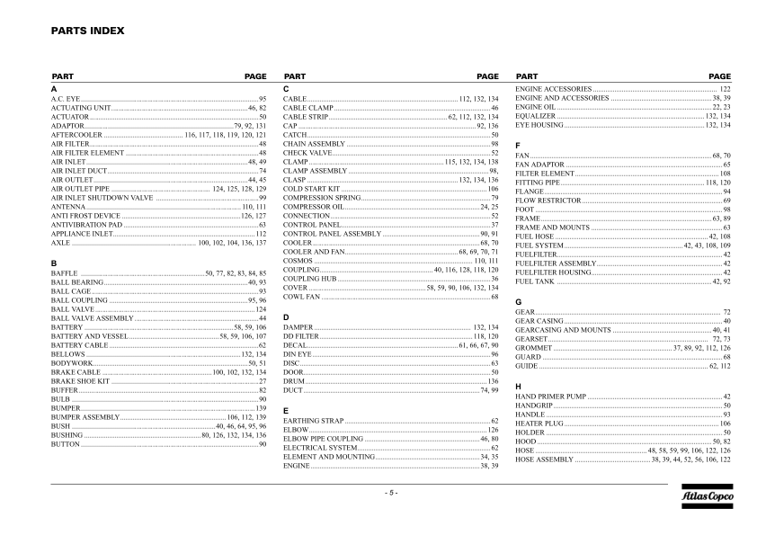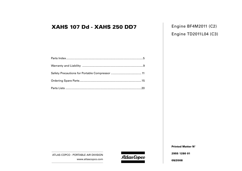 Atlas Copco XAHS 107 DD XAHS 250 DD7 Portable Compressor Parts List rev.2