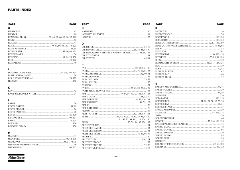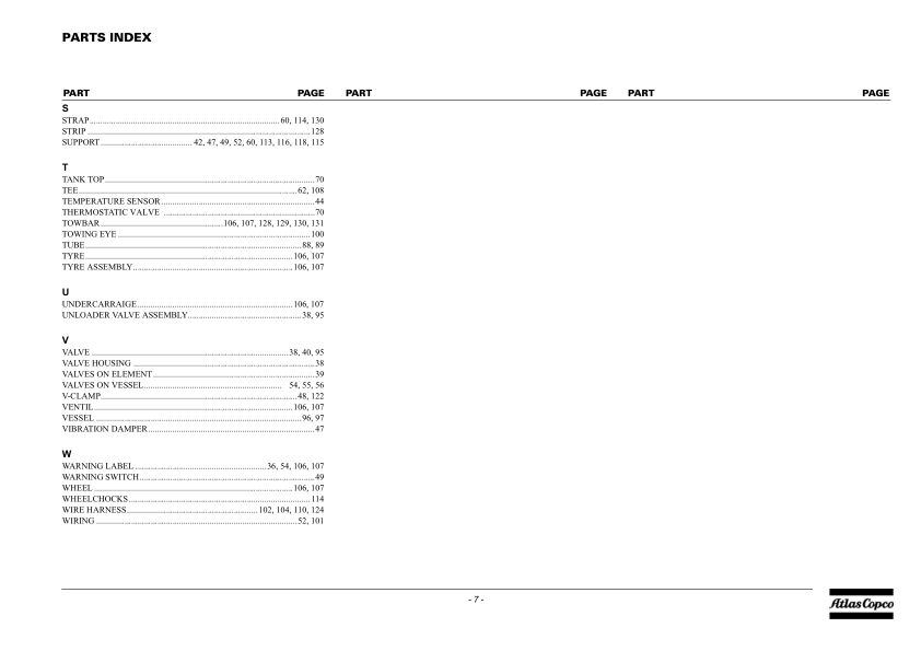 Atlas Copco XAHS 347 XAHS 710 Portable Compressors Parts List