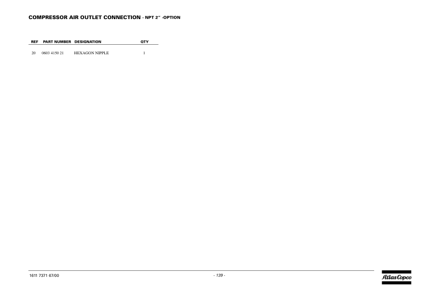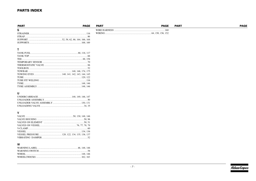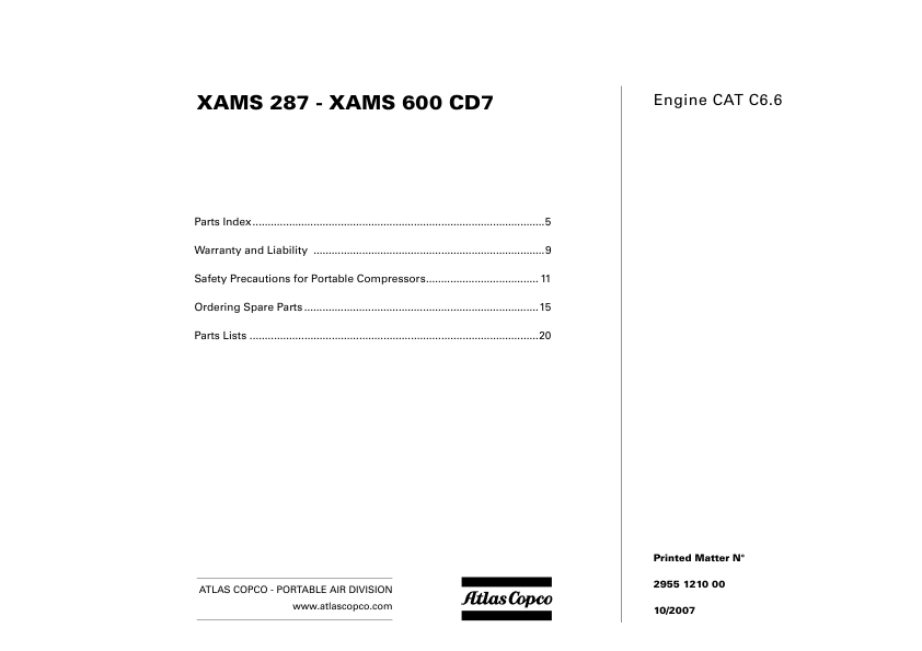 Atlas Copco XAMS 287 XAMS 600 CD7 Portable Compressor Parts List