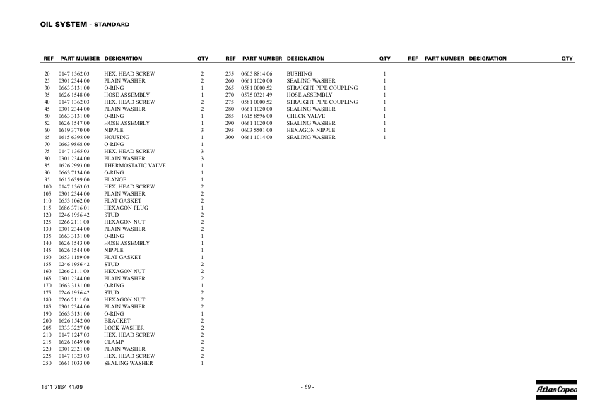Atlas Copco XAMS 407 XAMS 850 Portable Compressor Parts List