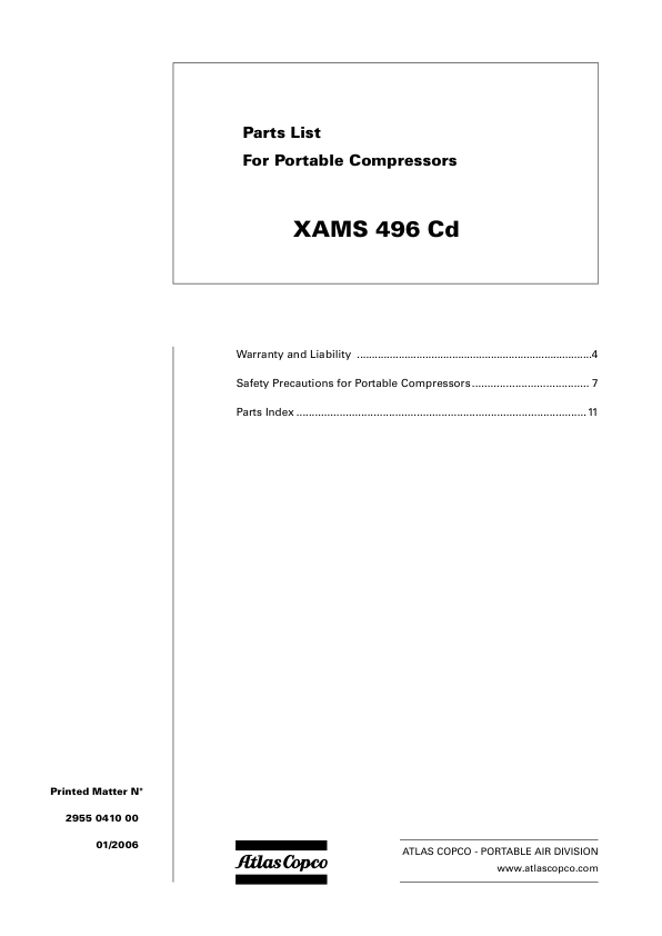 Atlas Copco XAMS 496 Portable Compressors Parts List