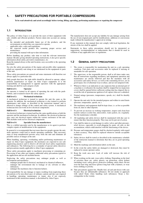 Atlas Copco XAS 37 KD Portable Compressors Parts List