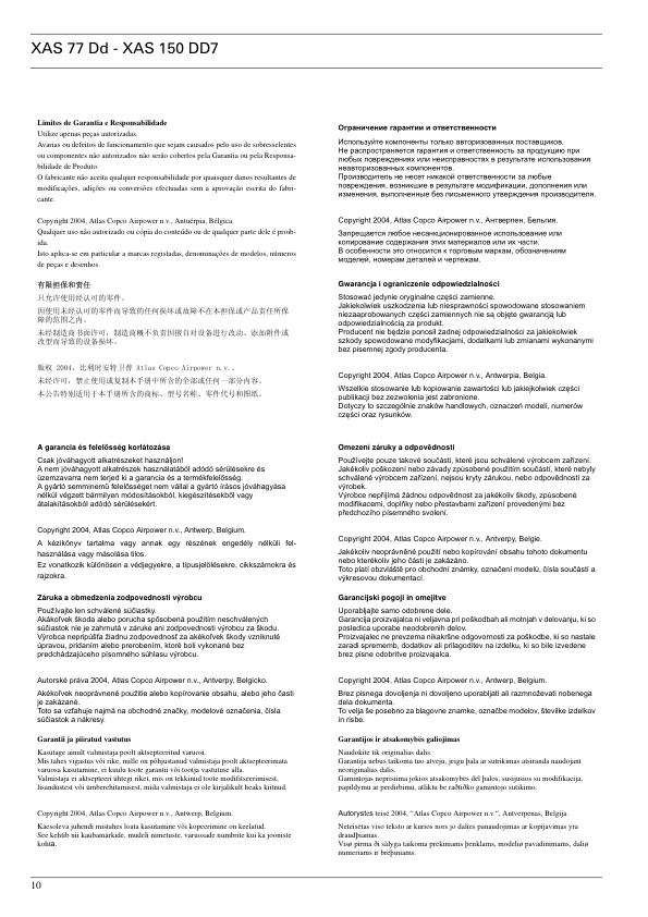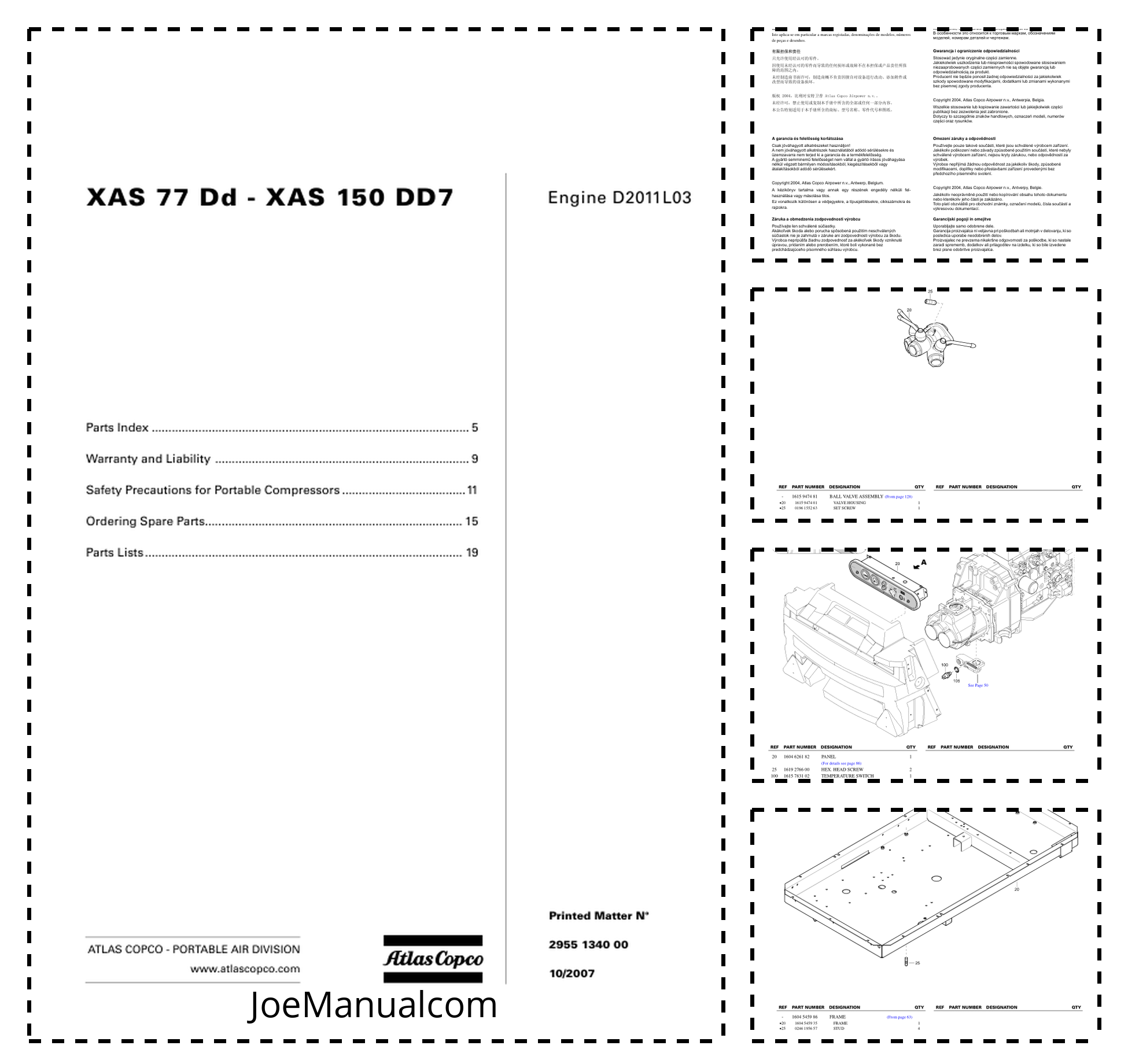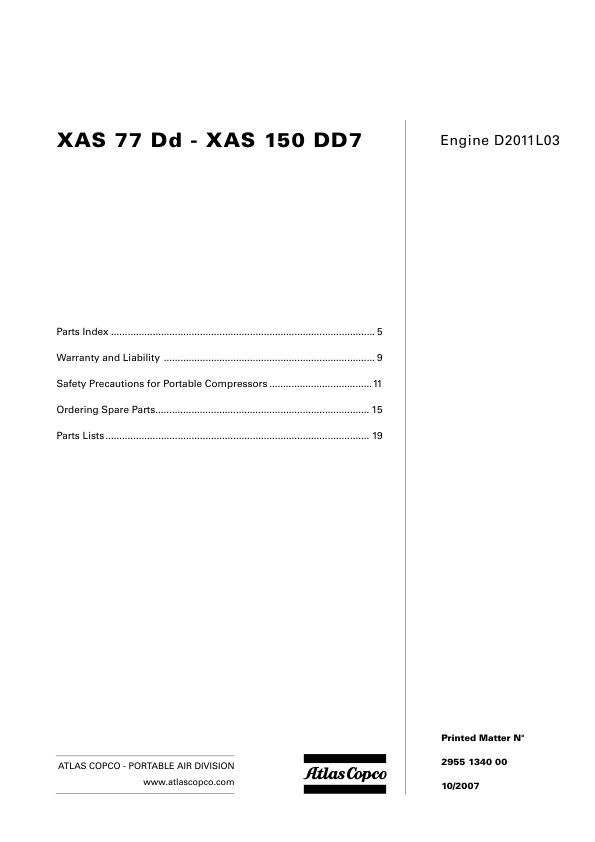 Atlas Copco XAS 77 DD XAS 150 DD7 Portable Compressors Parts List