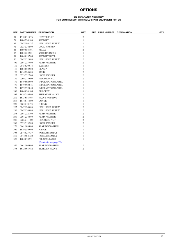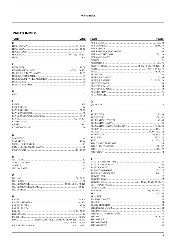 Atlas Copco XATS 116 Portable Compressors Parts List