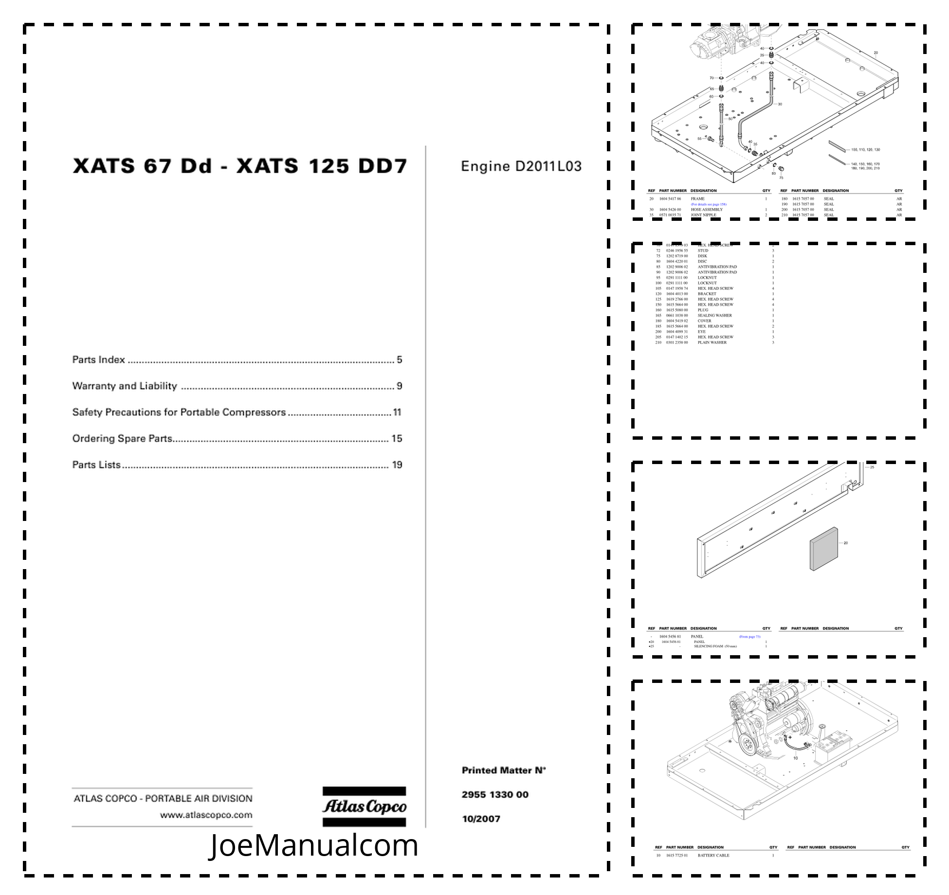 Atlas Copco XATS 67 DD XATS 125 DD7 Portable Compressors Parts List