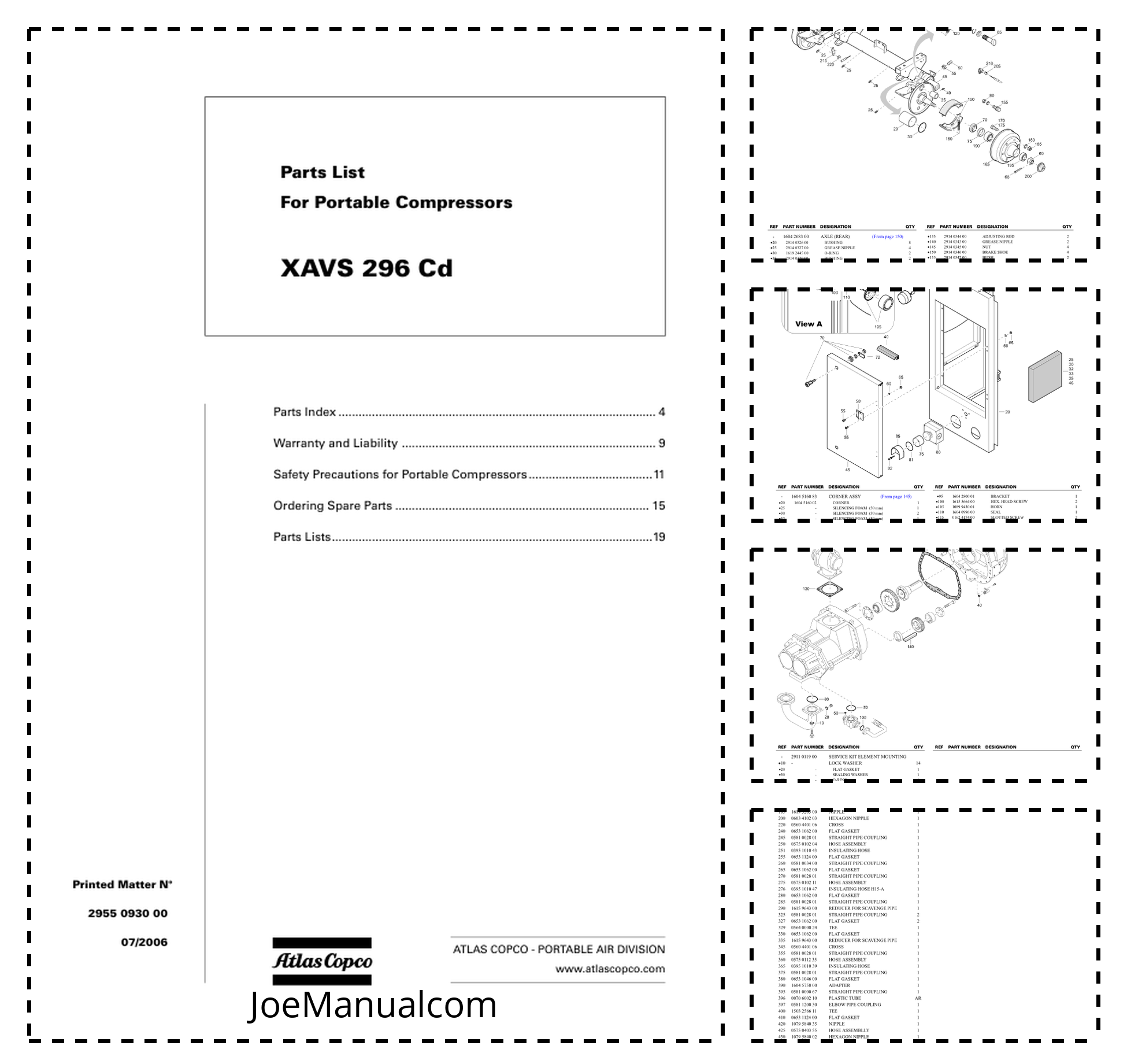 Atlas Copco XAVS 296 Portable Compressors Parts List
