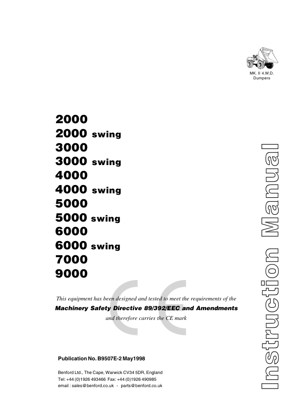 Benford 2000 3000 4000 5000 6000 7000 9000 Swing Operation and Service Manual 1998