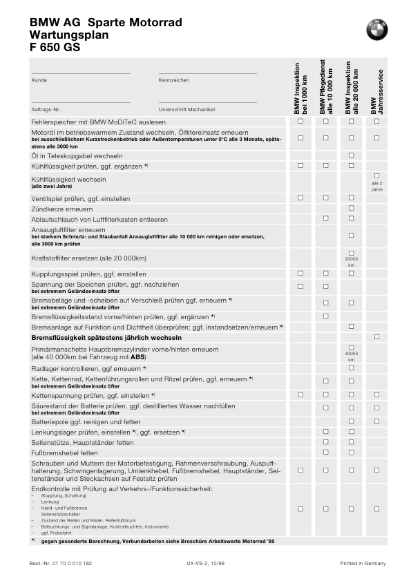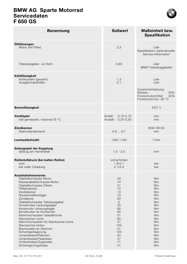 BMW F 650 GS Motorcycle Service Manual