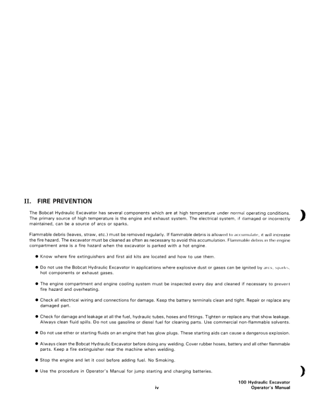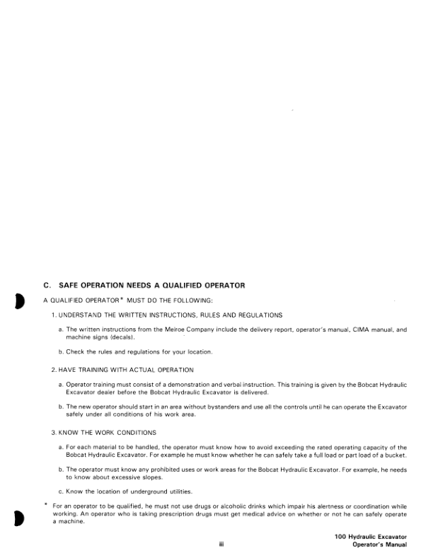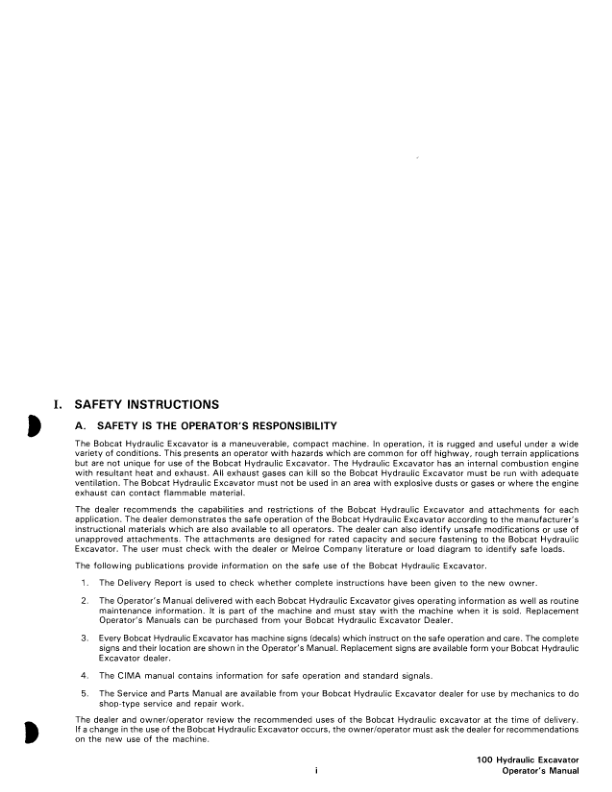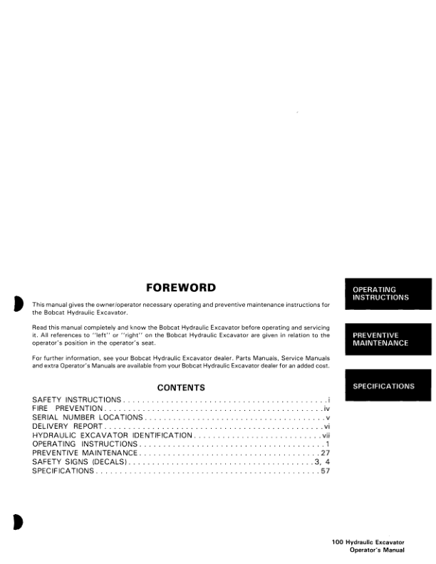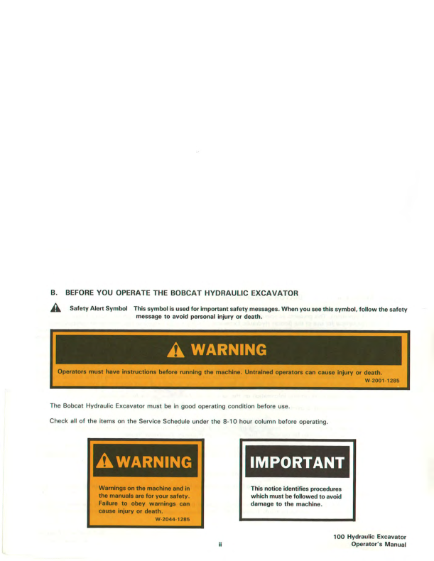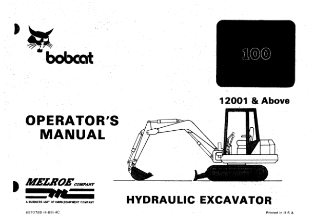 Bobcat 100 Excavator Operation and Maintenance Manual 12001
