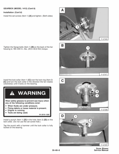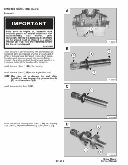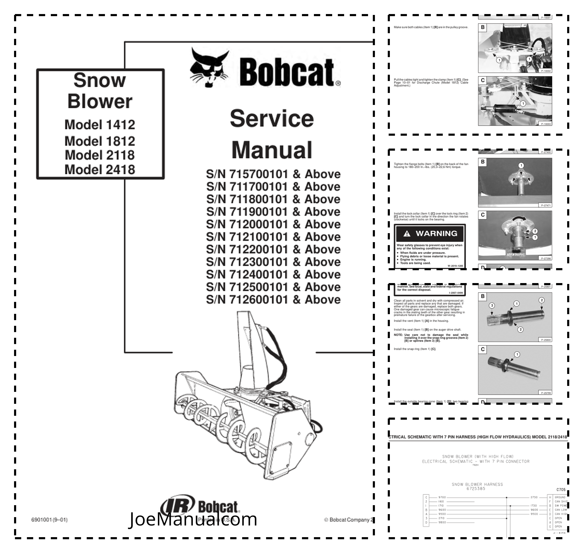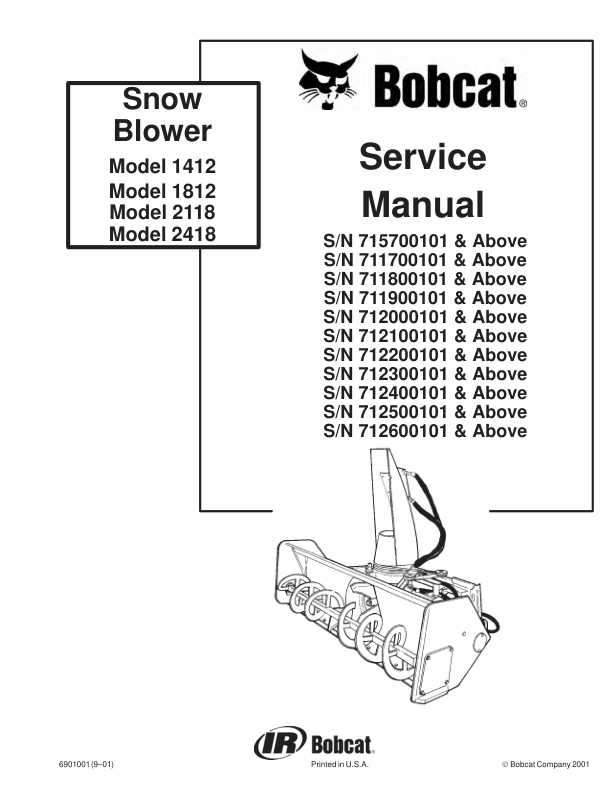 Bobcat 1412 1812 2118 2418 Snow Blower Service Manual