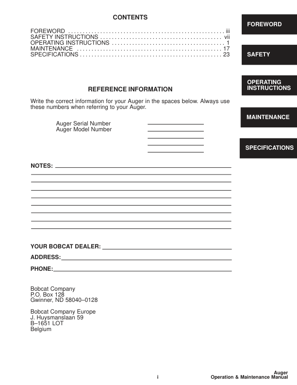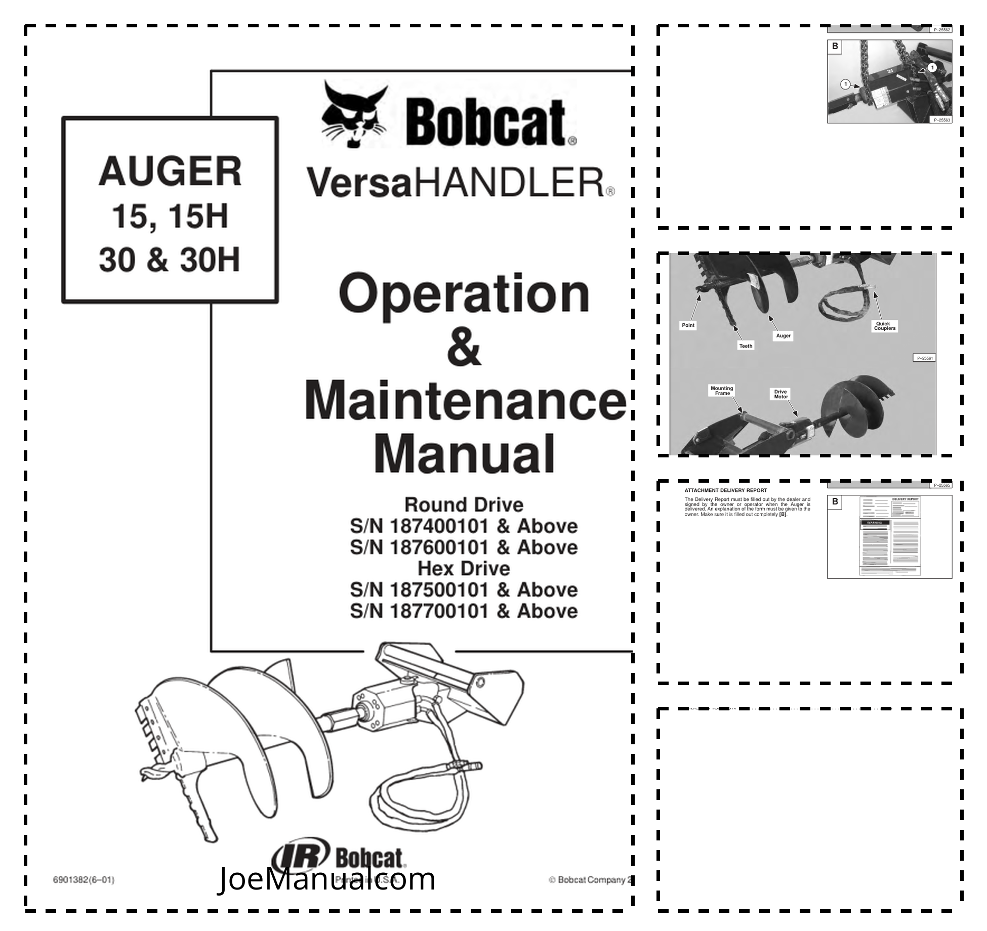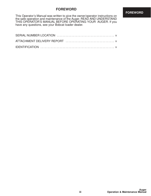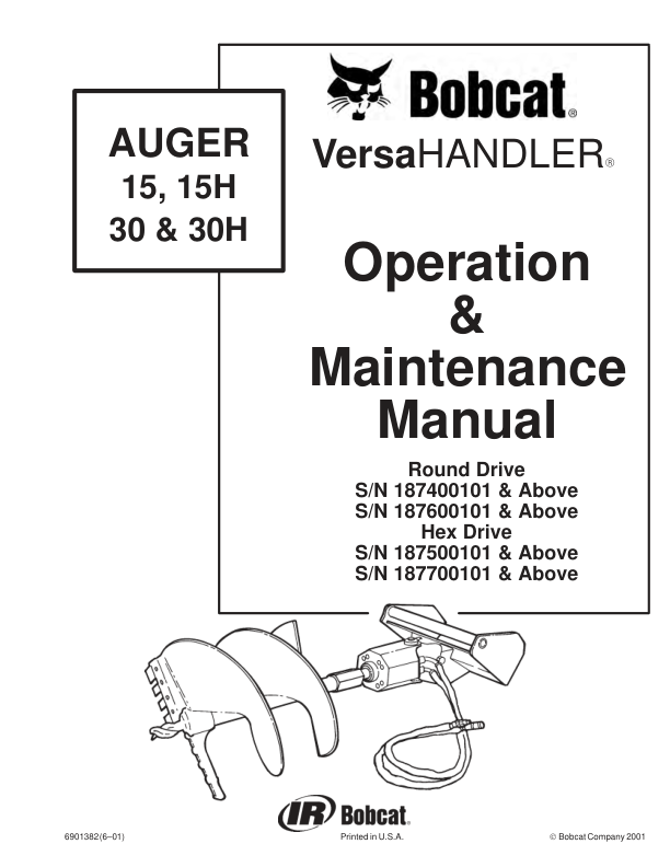 Bobcat 15 15 H 30 30 H Auger Operation and Maintenance Manual. This manual provides essential information for the safe and effective operation and maintenance of Bobcat 15, 15 H, 30, and 30 H auger attachments. It includes detailed instructions, troubleshooting tips, and maintenance schedules to ensure optimal performance and longevity of your equipment. Bobcat 15 15 H 30 30 H Auger Operation and Maintenance Manual. This comprehensive guide offers vital information for operators and maintenance personnel working with Bobcat 15, 15 H, 30, and 30 H auger attachments. It covers proper operating procedures, preventative maintenance schedules, and troubleshooting techniques to help maximize equipment uptime and ensure safe working practices.