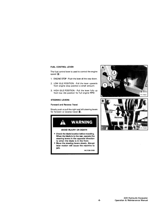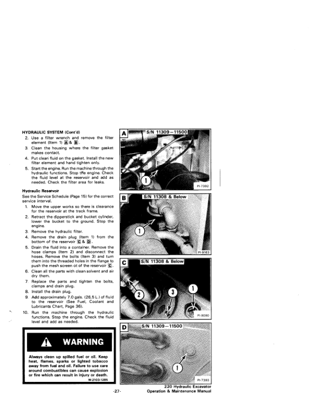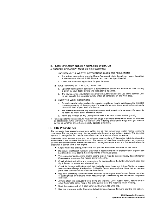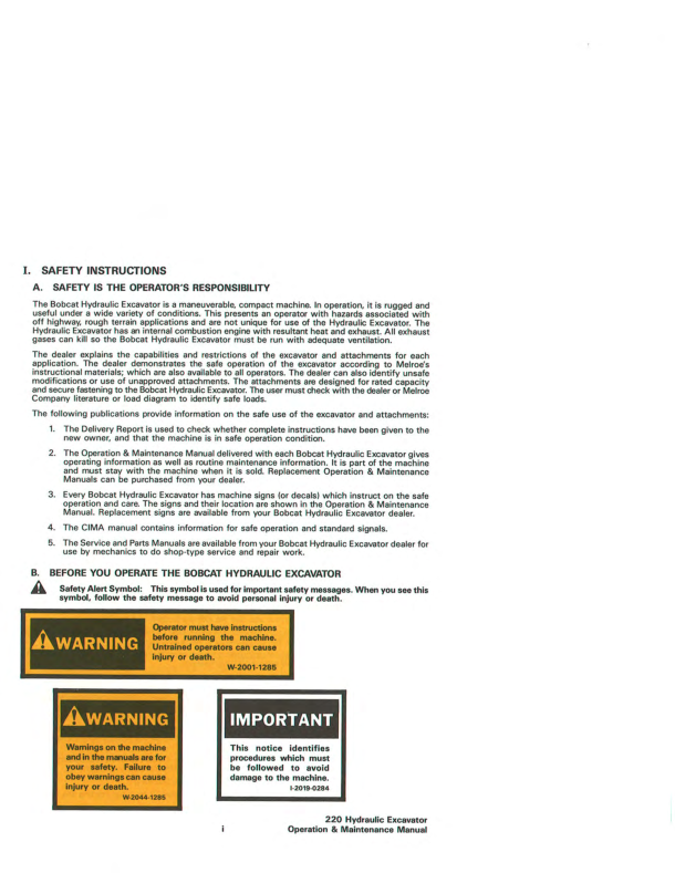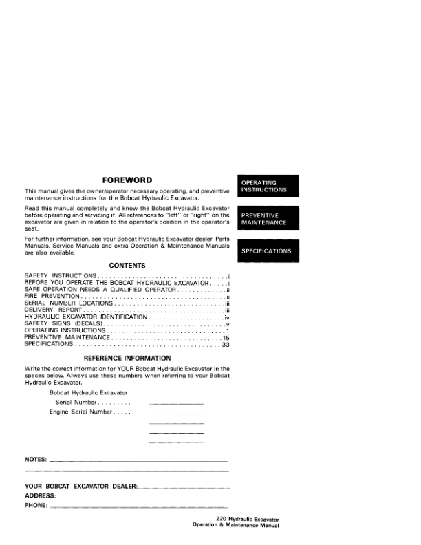 Bobcat 220 Excavator Operation and Maintenance Manual 11500