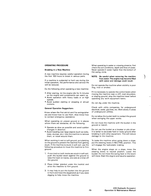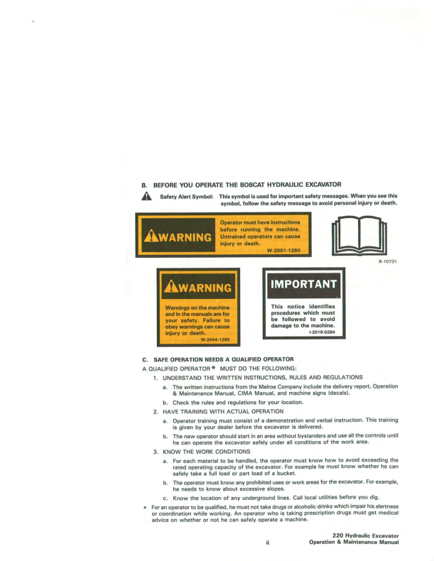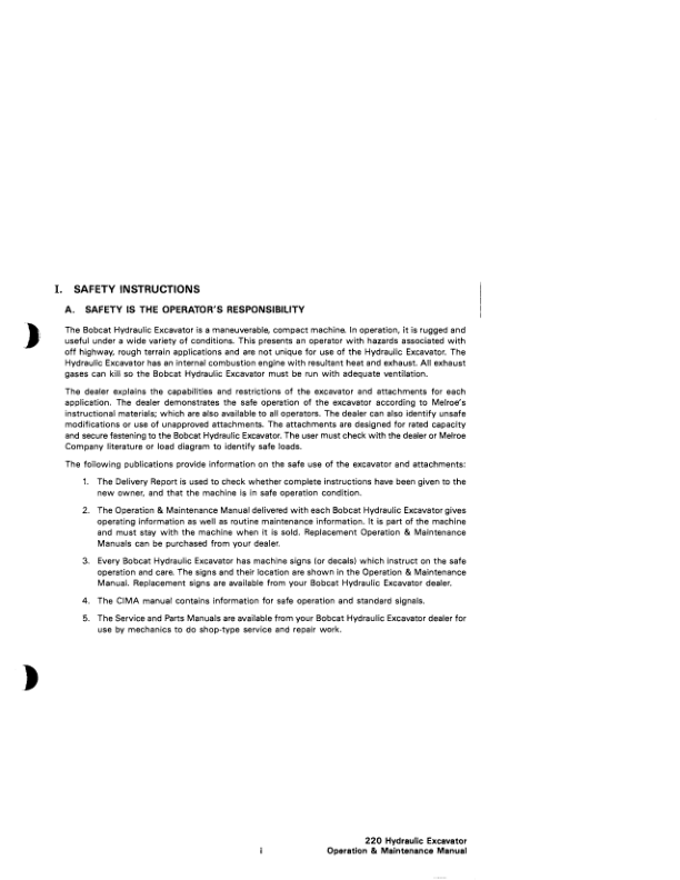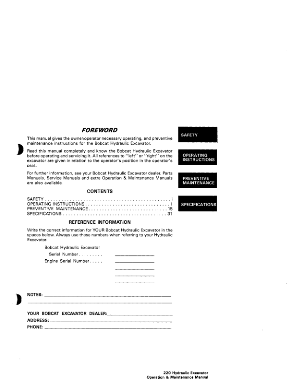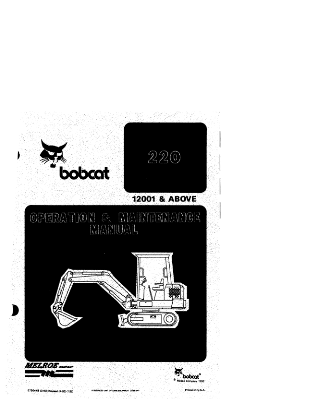 Bobcat 220 Excavator Operation and Maintenance Manual 12001