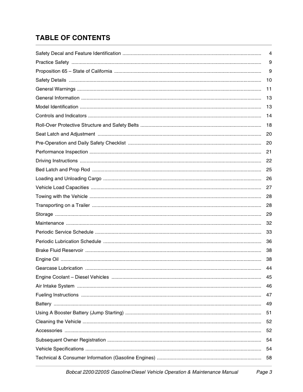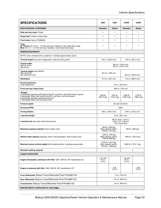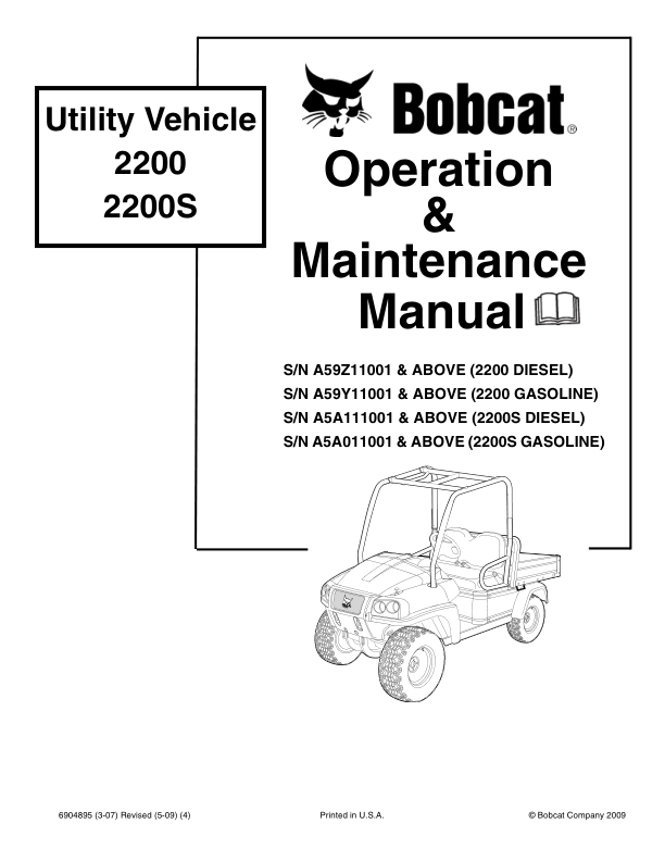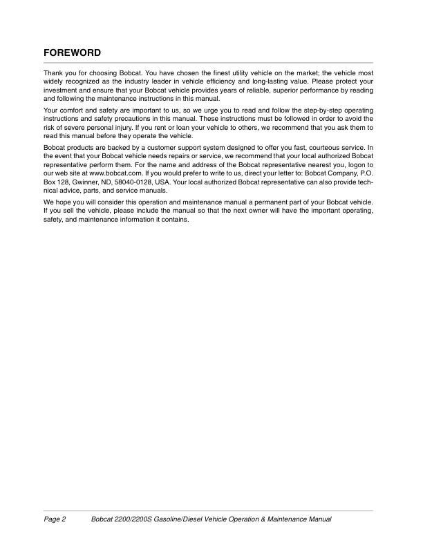 Bobcat 2200 2200S Utility Vehicle Operation and Maintenance Manual