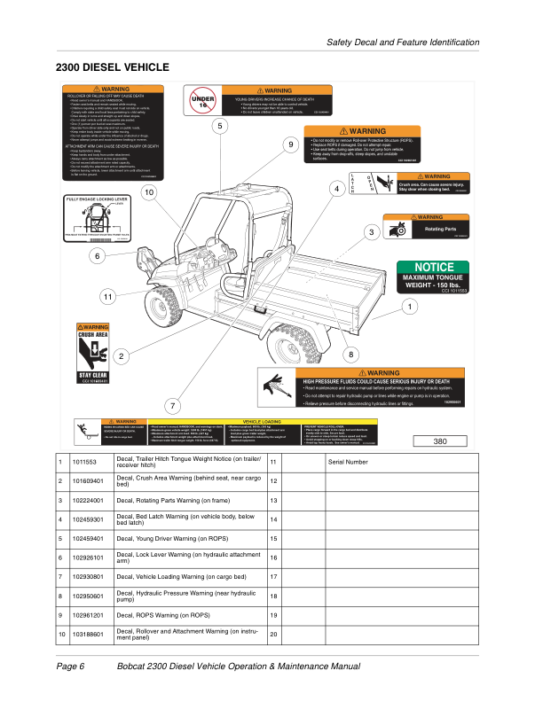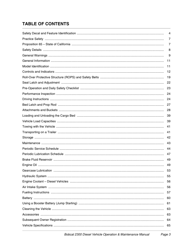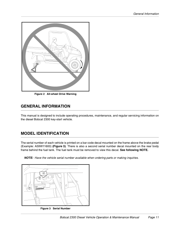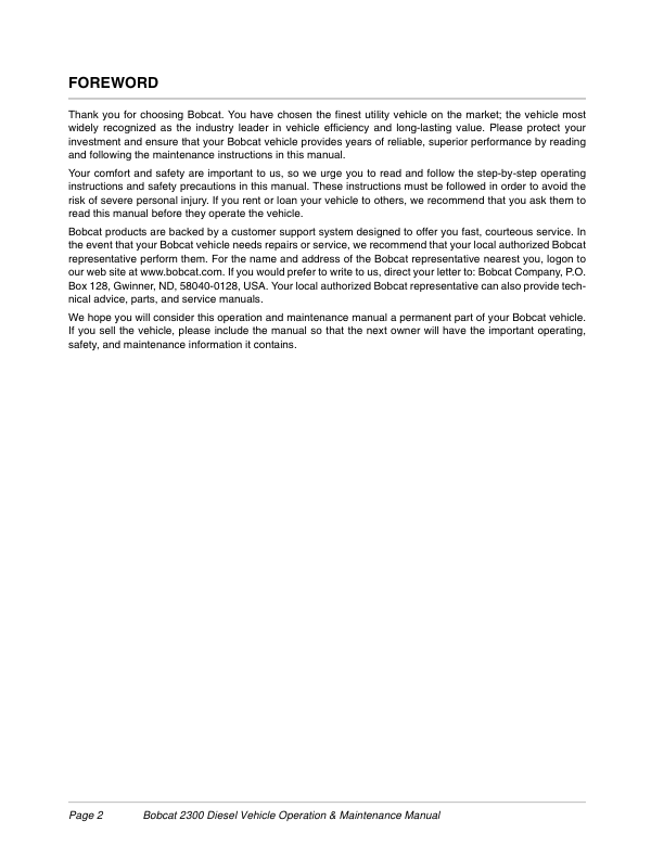 Bobcat 2300 Utility Vehicle Operation and Maintenance Manual A59W