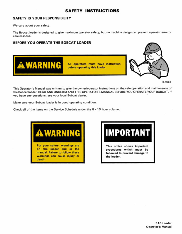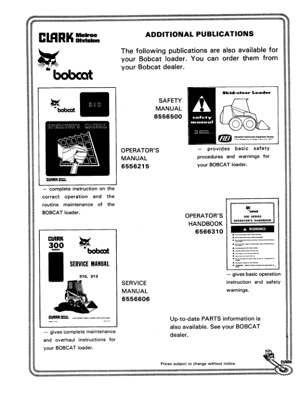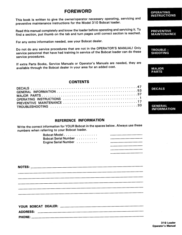 Bobcat 310 Skid Steer Operation and Maintenance Manual