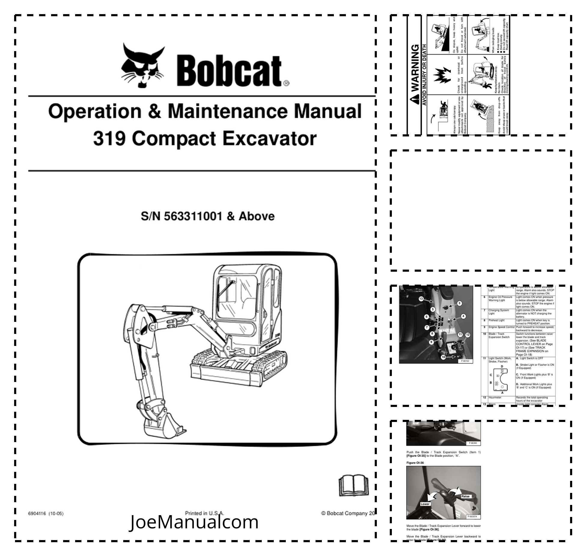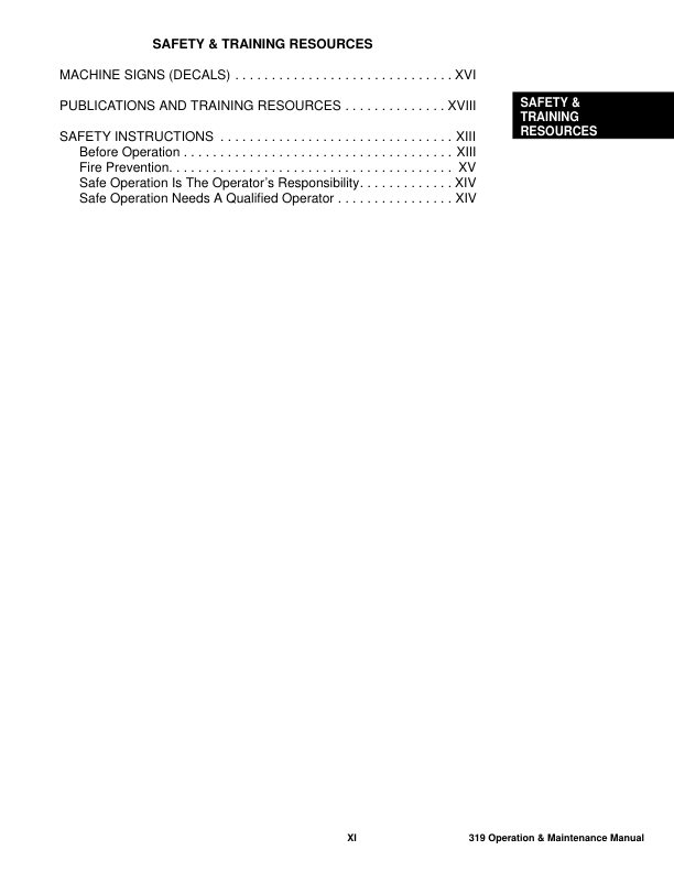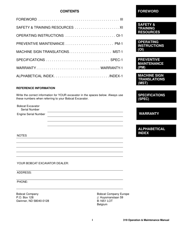 Bobcat 319 Excavator Operation and Maintenance Manual 563311001