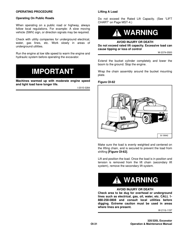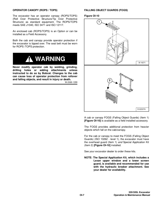Bobcat 320 320L Excavator Operation and Maintenance Manual 224511001