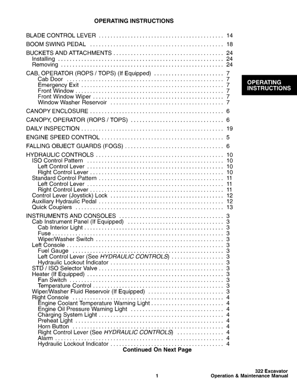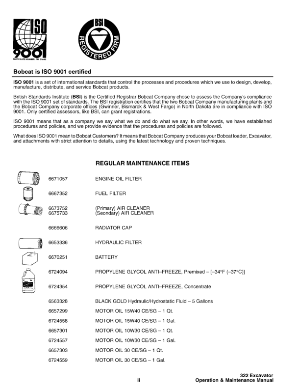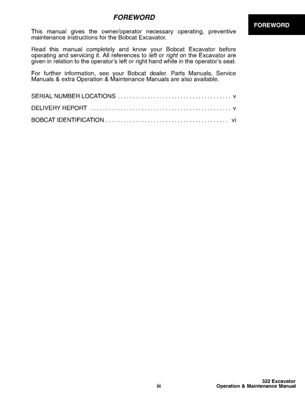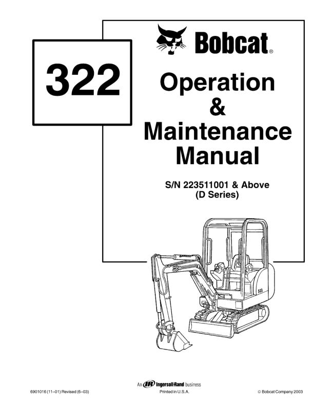 Bobcat 322 Excavator Operation and Maintenance Manual 223511001