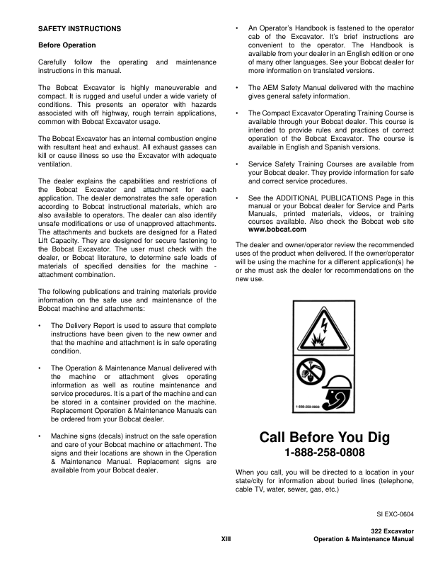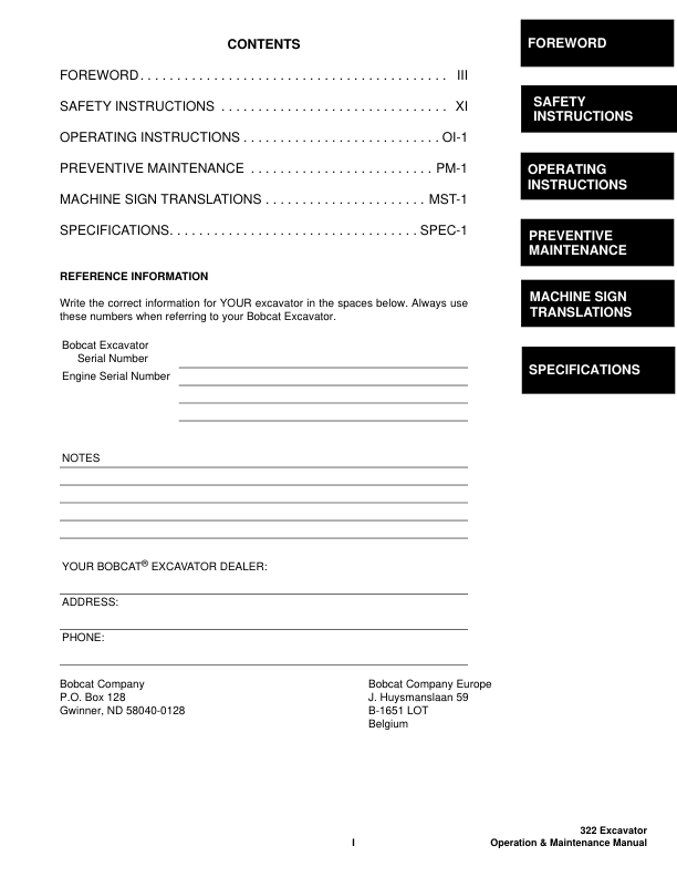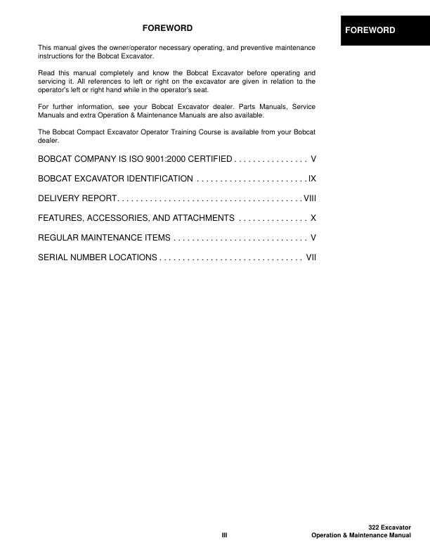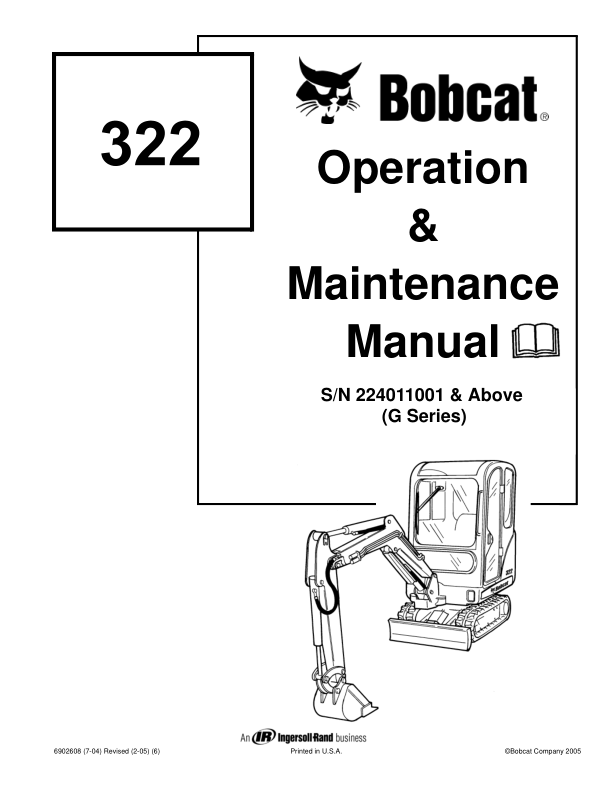 Bobcat 322 Excavator Operation and Maintenance Manual 224011001